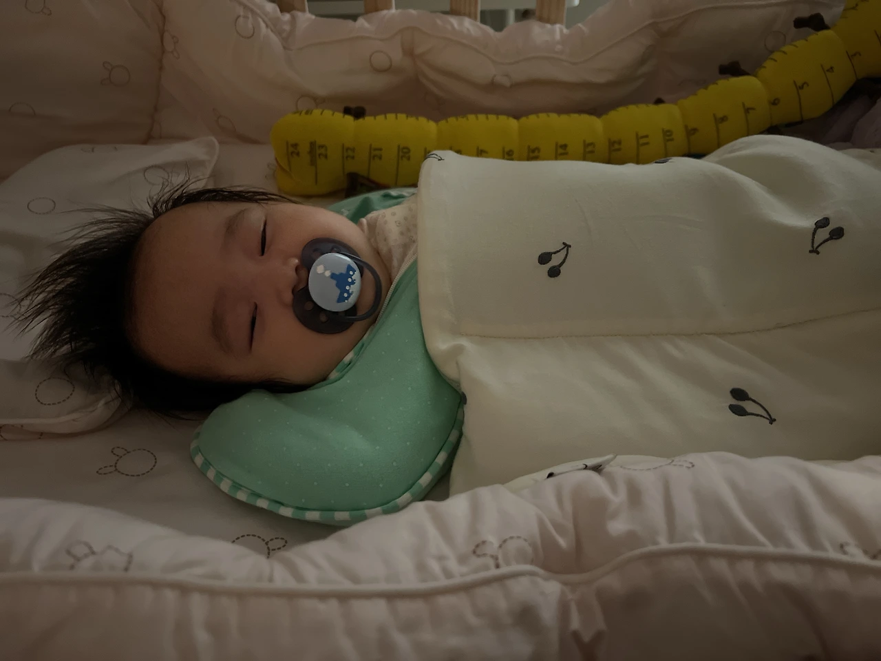 쪽쪽이 없이 재우려면 아이를 안아줘서 토닥토닥해주며 재워야 하는데 이게 참으로 힘이 많이 듭니다. 품에서 잠에 들어서 아가를 침대에 사뿐히 내려놓으면 계속 잘 자면 좋으련만, 꼭 등 센서가 즉각 반응하며 엄마 아빠를 찾으며 울어댑니다.