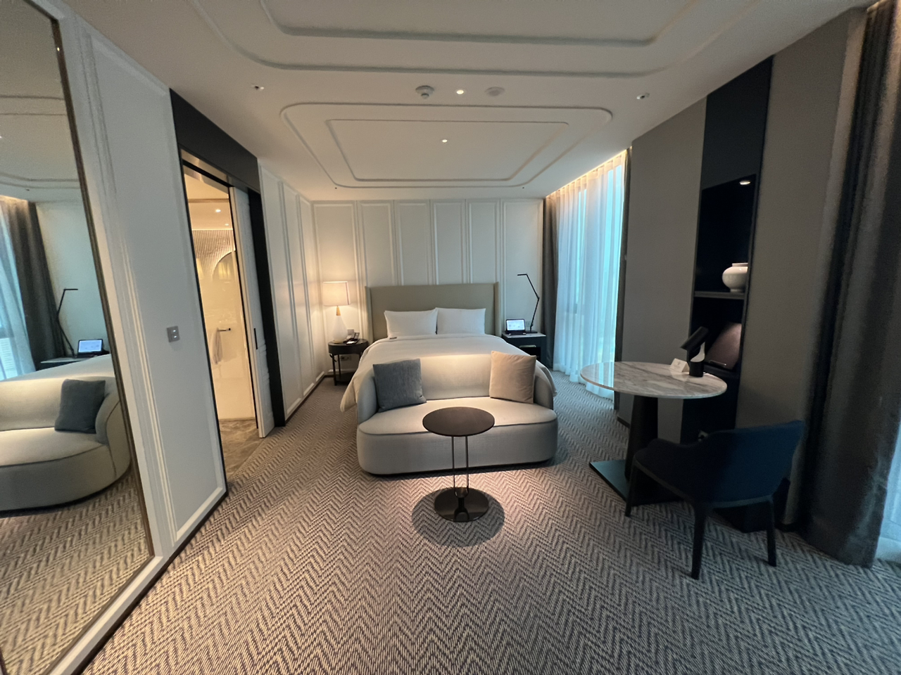 소피텔에 도착하여 지하 주차장에서 1층으로 이동 후, 안내 데스크가 있어서 조금 일찍 왔는데 얼리 체크인이 가능한지 여쭤봤습니다. 다행히 전날 그 룸이 비었는지 입실이 가능하다 하여 2시도 되기 전에 체크인이 가능했습니다. 로비는 6층에 있어서 올라가서 체크인 한 이후에 16~31층 사이의 객실은 객실 전용 엘리베이터를 이용하시면 되겠습니다.