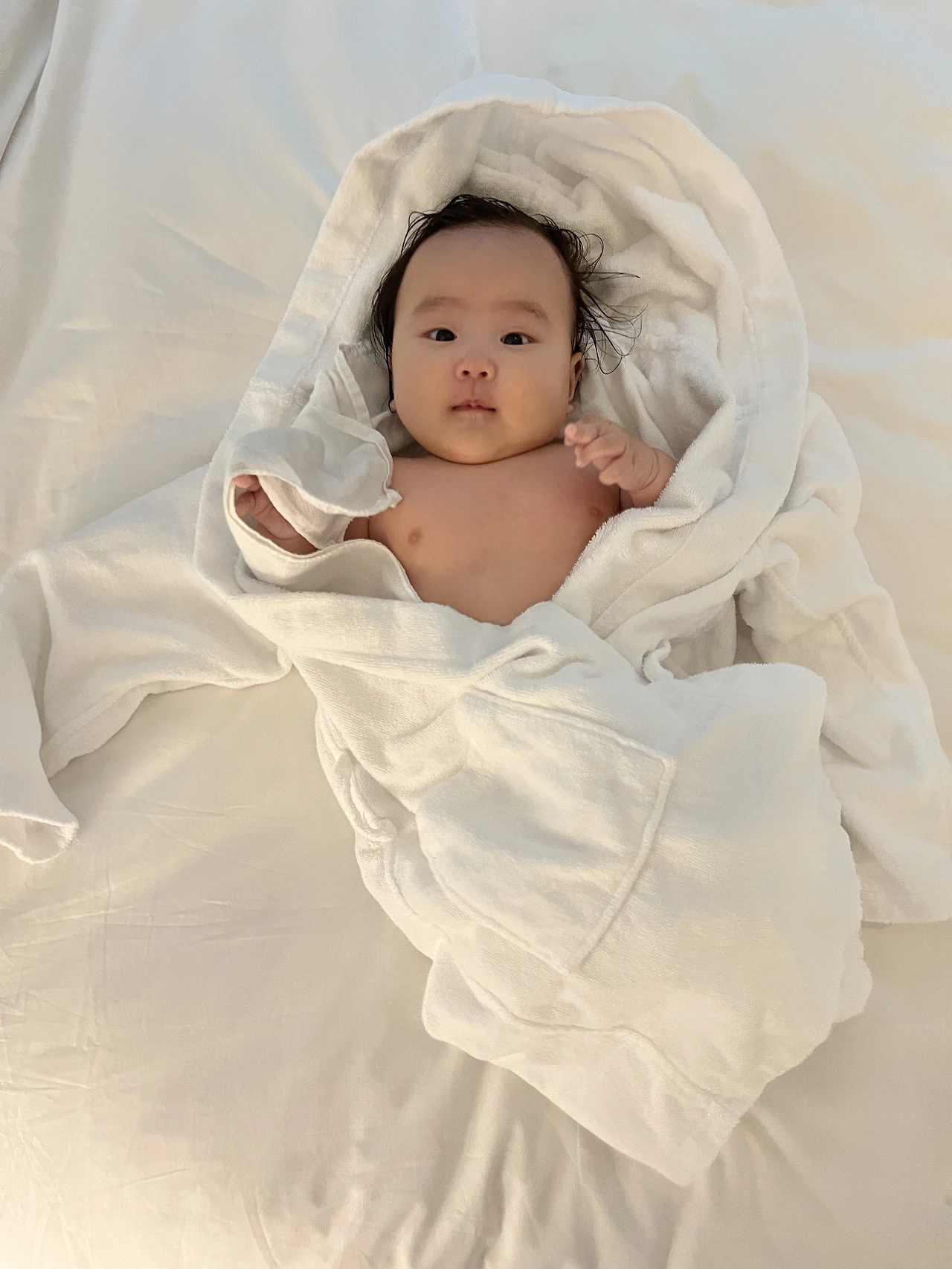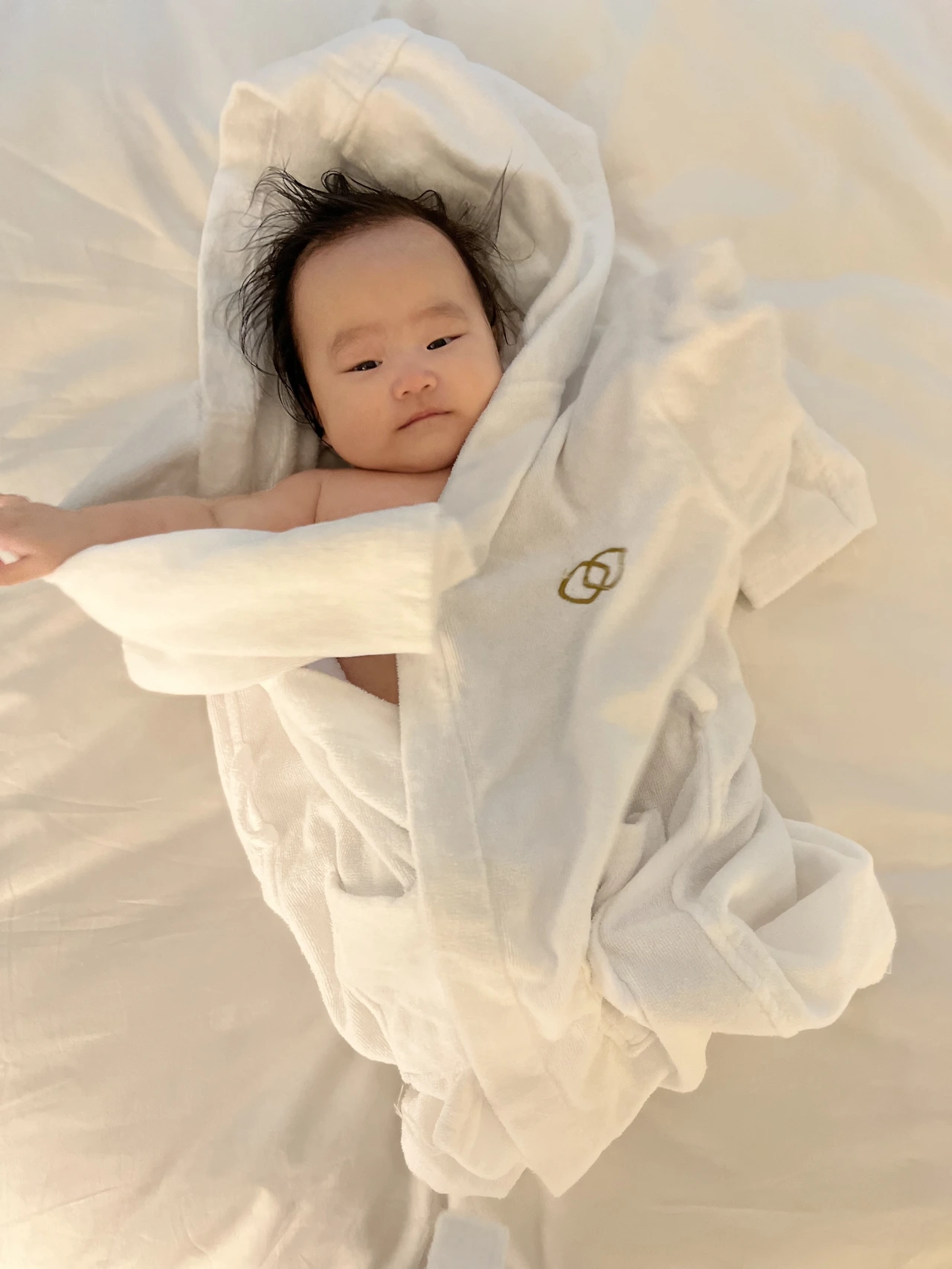 이후 목욕도 시키고, 아가 가운에 들어가 봅니다. 아직 너무 크네요. 아기가 뽀송뽀송하니 컨디션 최고인 것 같습니다. 물놀이도 하고 목욕도 했으니 나른하게 잠도 잘 들 것 같네요. 아기 150일 핑계로 엄마 아빠도 호캉스로 힐링하고 갑니다. 다음 호캉스는 어디로 가야 할지 벌써 설레네요. 아마 강남 안다즈가 되지 않을까 싶습니다.