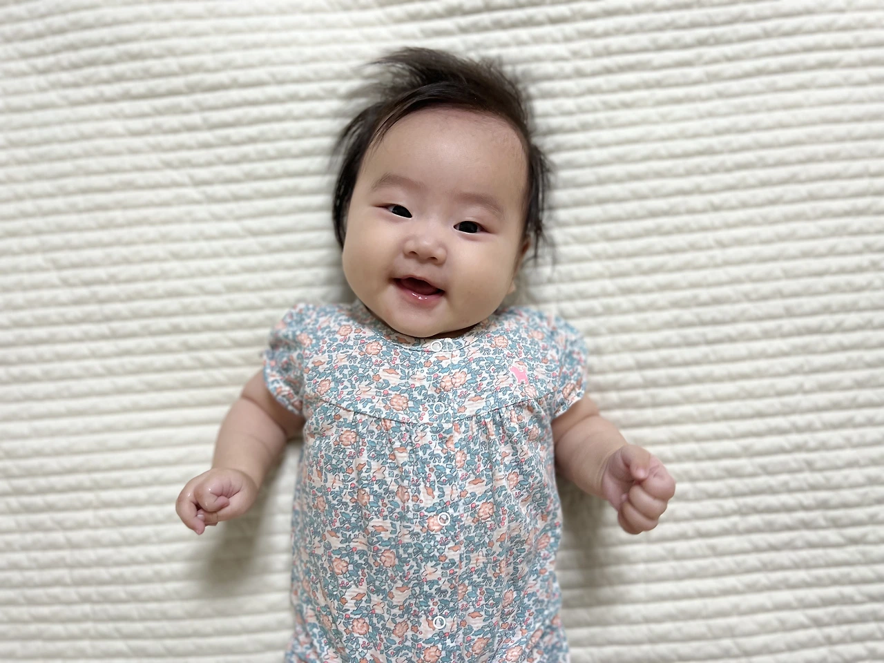 그러자 5개월쯤 되었을 때 아가는 자연스럽게 뒤집기를 성공하고, 이후 되집기도 그리고 이제는 배밀이도 하기 시작합니다. (곧 스스로 앉고, 기어 다니기도 할 것 같습니다) 너무 폭신한 담요에만 아기가 있는 것도 발달에 좋지는 않은 것 같습니다. 뒤집기도 호캉스 갔을 때 성공을 했고요, 배밀이도 본가에 가서 다소 딱딱한 매트 위에 눕혀 놓았을 때 아기도 더 힘이 잘 들어가는 듯했습니다.