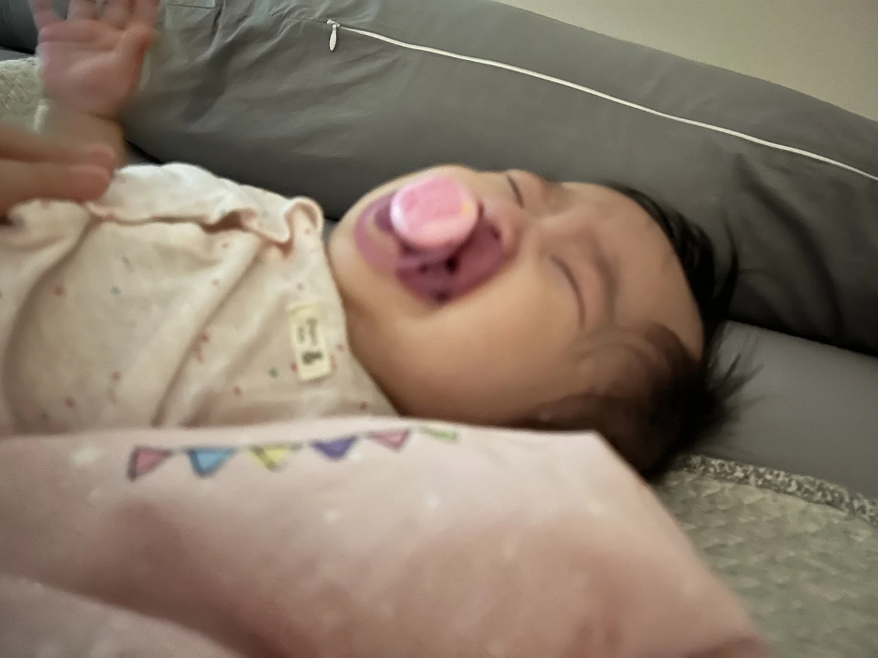 이가 나서 유심히 아기를 관찰하는데, 유독 입술을 푸우우우하면서 침 튀기며 소리를 내기도 하고, 자기 손가락을 혹은 담요를 평소보다 훨씬 많이 빱니다. 이앓이가 분명해 보입니다. 평소 찡찡이 조금 늘어났고, 특히 잘 때 갑자기 깨서 우에에엥하면서 울기도 합니다. 그럼 얼려놨던 쪽쪽이를 세 번 정도 대령해야 아기가 다시 잠에 들곤 합니다.