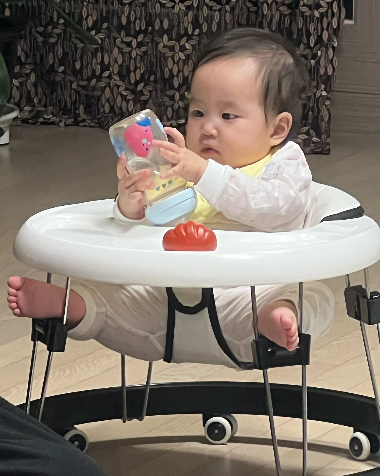 아기 보행기에 대해서 다양한 이야기가 있더라고요. 보행기 탈 때 쓰는 근육이 아기 걷기 근육과는 별개라 도움이 안 된다는 이야기를 아내를 통해 건네 들은 적이 있습니다. 하지만 장모님 장인어른이 당근으로 보행기를 처음 구비해주신이후 지금 총 세 대의 보행기가 각 집에 있습니다. 제 개인 생각으로는 아기가 보행기 타는 것이 기어 다니고 걷는데 그래도 도움이 되는 것 같습니다. 요새 온 집안 구석구석을 보행기로 이동하며 탐구하고 있거든요.