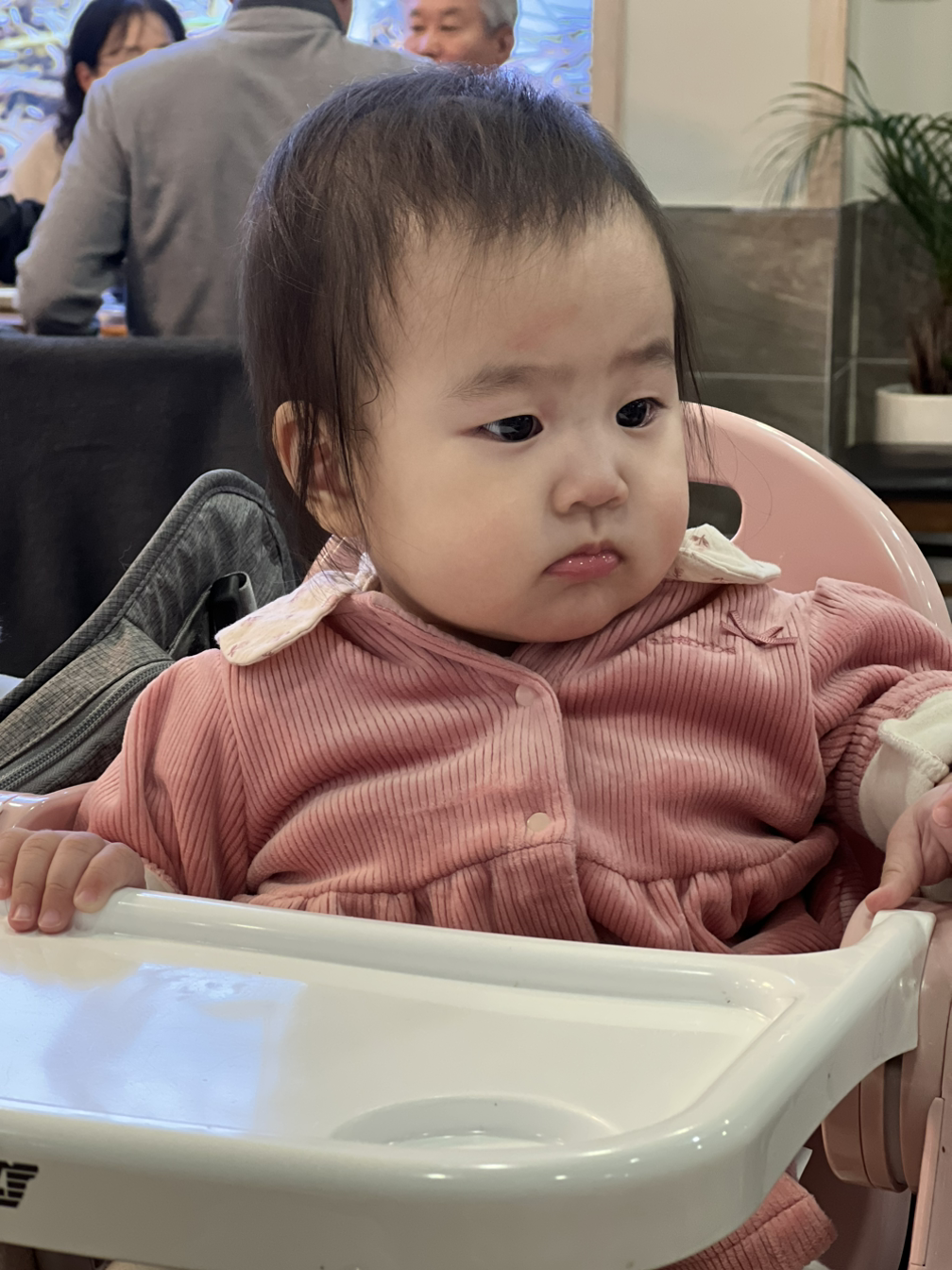 근방에 버섯이 유명한 것 같더라고요. 버섯전골을 먹어봅니다. 아가가 아직 먹을 수 있는 음식은 없네요. 우리 아가를 아기의자에 앉혀두고, 작은 과자를 주었습니다. 떡뻥도 많이 줬는데요 이제 아가가 많이 자라서 떡벙은 정말 몇 초면 다 먹어버립니다. 아래 뻥튀기 같은 과자를 주면 아기가 아기자기하게 손가락에 침을 묻혀가며 하나씩 먹는데 너무 귀엽습니다. (시간도 벌 수 있는 것은 꿀팁입니다.)