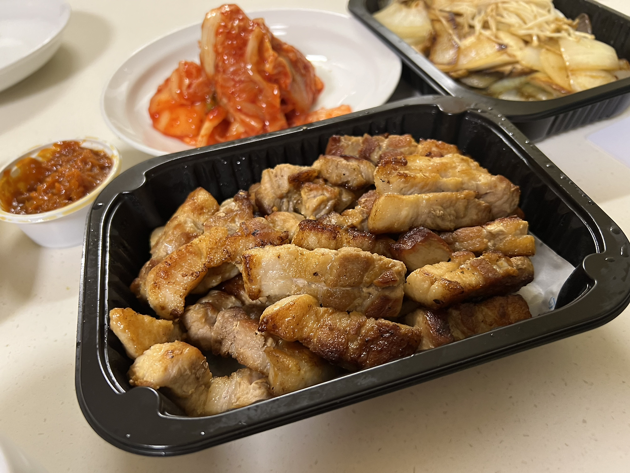 아주 어렸을 때부터 이 리조트 놀러 왔었던 거 같은데, 패밀리 여행에 최적화된 모습을 느낀 게, 지하 마트에서 고기를 구입하고 일정 비용(1000원)을 내면, 고기를 구워서도 줍니다. 아기와 함께하는 저녁식사가 고민이었는데 간편하고 맛있게 객실에서 먹을 수 있었습니다.
