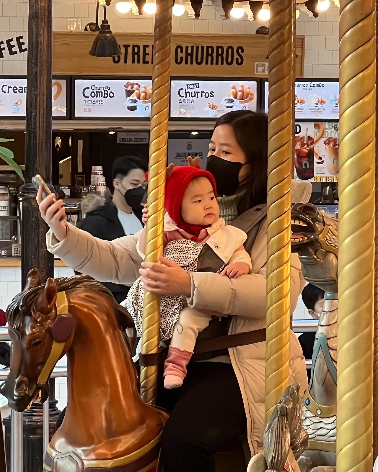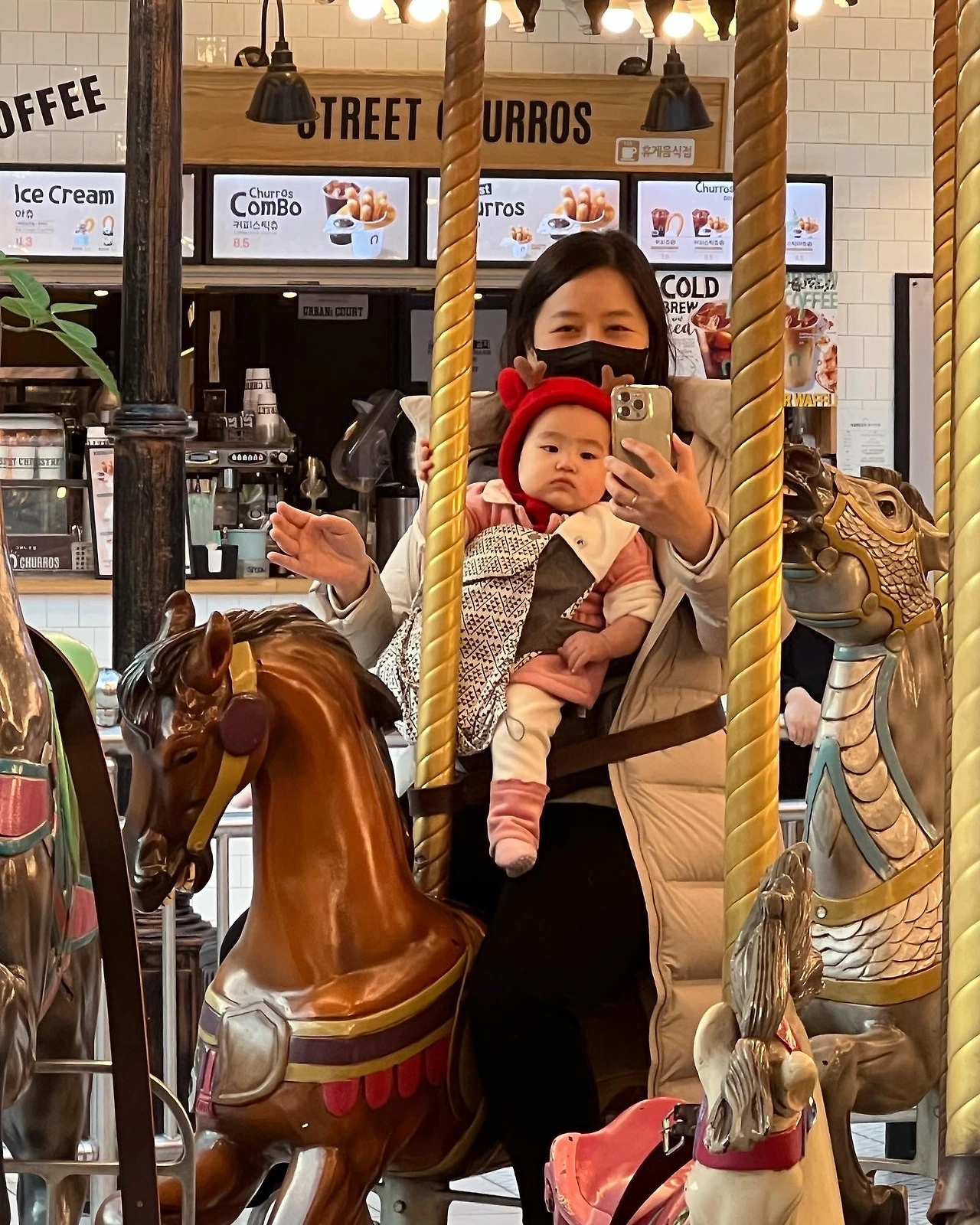 아니 여기 규모 대단하네요. 몰 아래에 놀이기구(회전목마, 범퍼카)도 있고 오락실도 있고 볼링장도 있고 난리 났습니다. 아내는 로망의 하나였던 아기와 회전목마 타는 것을 실현합니다. 저는 열심히 사진을 찍고 영상을 녹화했습니다. 아기가 무서워할 줄 알았는데 약간 멍하게 있더군요.
