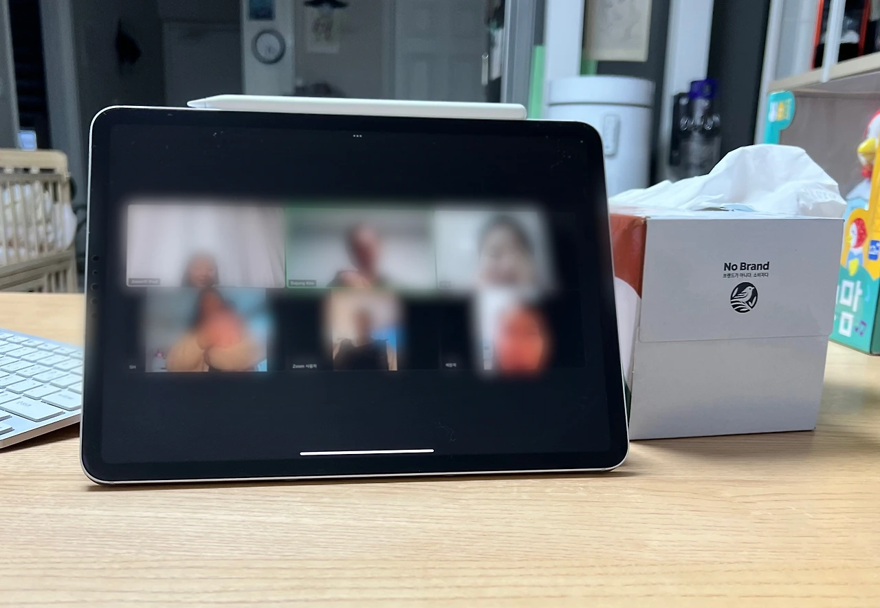 요새는 산모들이 집에서 밖을 못나가니 아기들은 안고서 줌으로 미팅을 하더라고요. 안쓰러우면서도 너무 귀여운 모습이었어서. 모자이크한 해당 사진을 첨부해 봅니다.