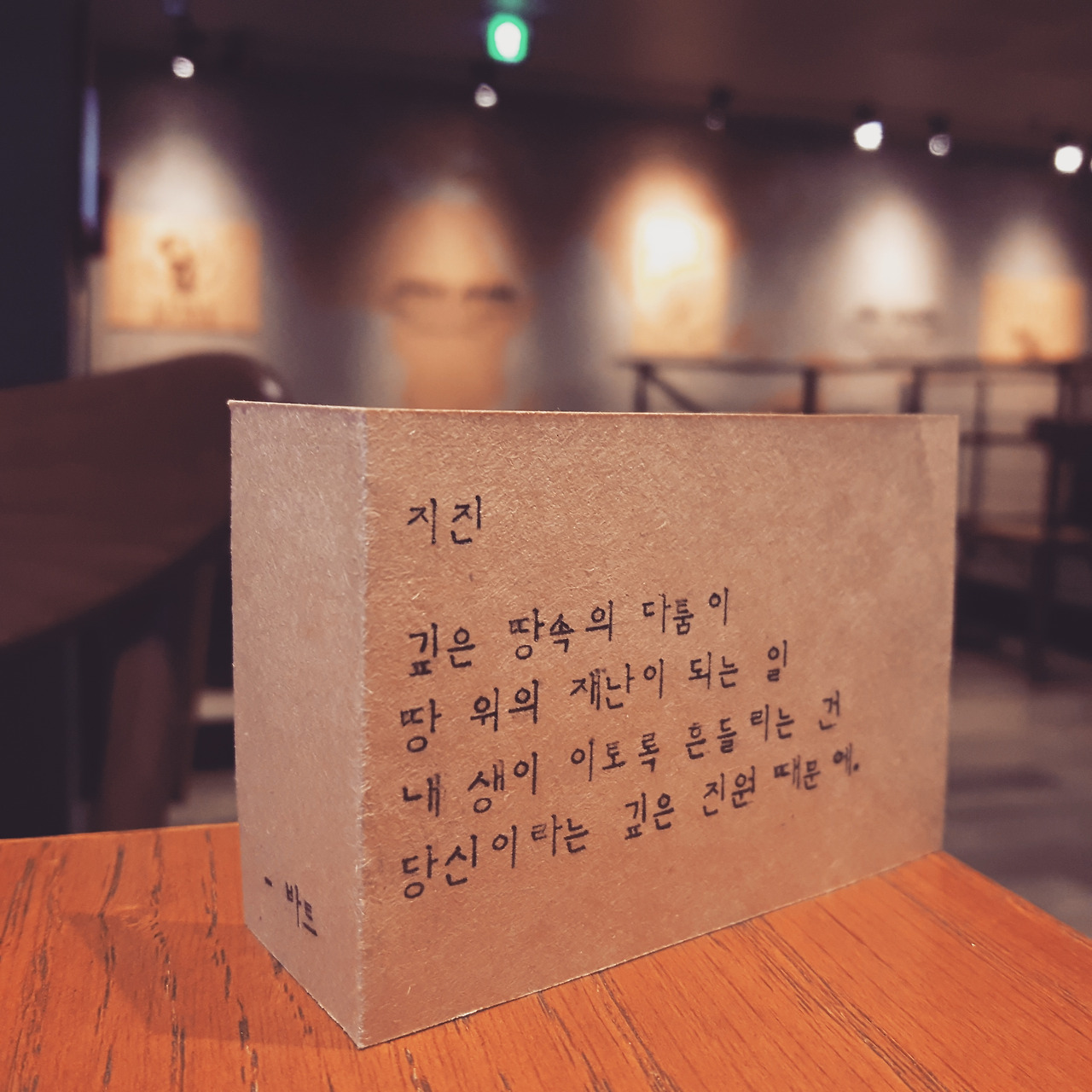 #타이퍼 #바트 #typer #bart #지진 #지진피해 #지진피해없길 #진원 #땅의지진 #생의지진 #clover707dlx #스타벅스금련산역점 #에세이 #작가