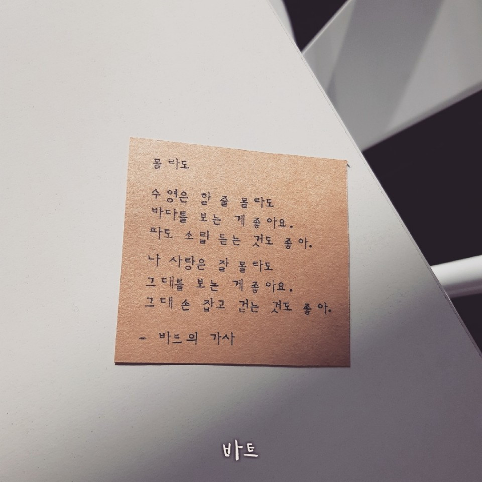 #타이퍼바트 #typerbart #bart #햇살 #봄볕#봄 #미세먼지 #가사 #작사 #작가 #계절의온도 #부경대카페 #경성대카페 #김바트