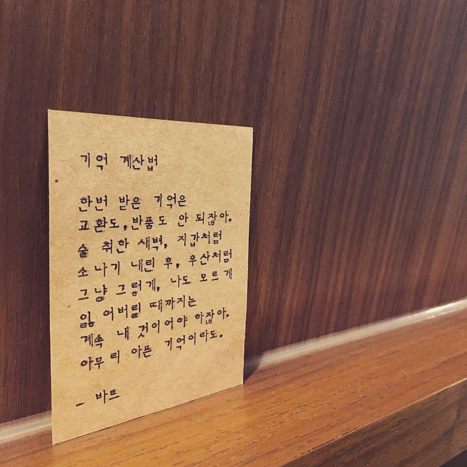 #타이퍼 #바트 #typer #bart #기억 #기억계산법 #지갑 #우산 #반품 #에세이 #시 #글귀#clover707dlx #작가 #서면 #서면교보문고