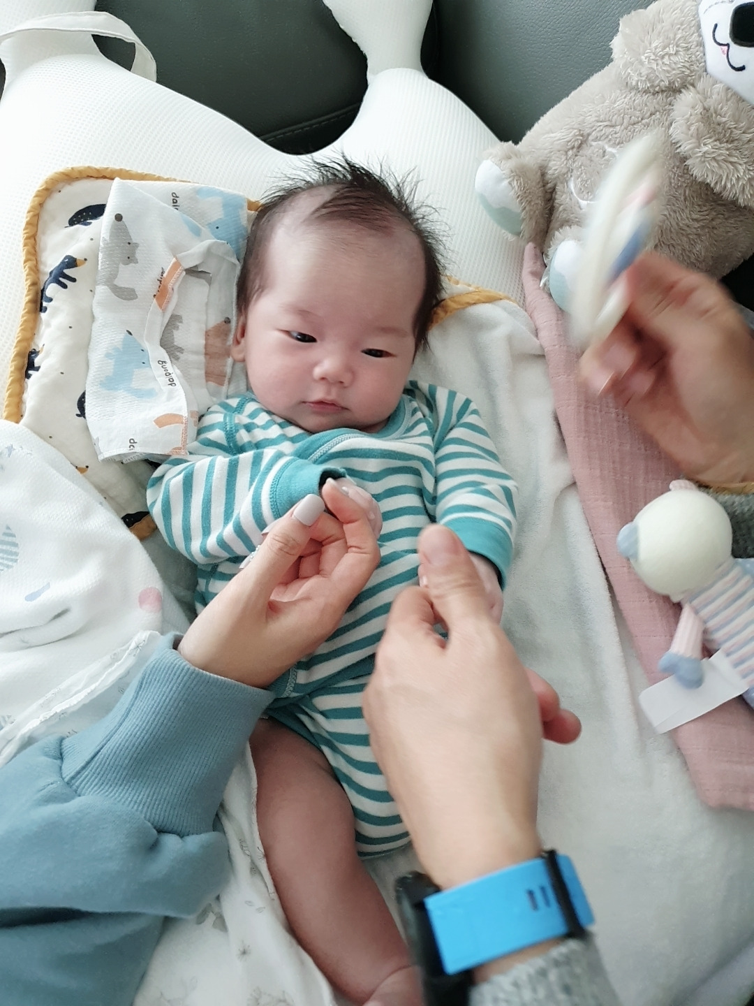 첫 번째 만남으로는 장인어른, 장모님, 처제가 왔다. 와이프가 평일 식사를 맛있게 할 수 있도록 준비해주신 전복죽과 각종 반찬을 함께 가지고 오셔서 너무 좋았다. (내가 좋아하는 고기 종류도 많이 챙겨주셔서 너무 감사하다) 번갈아가면서 호박이를 안아보고 얼굴에 함박웃음을 지으셨다. 가끔씩 터지는 호박이의 옹알이 소리에 인기 영화배우의 리액션에 반응하는 팬처럼 환호했다.