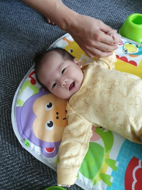 장난감에 반응하는 호박이를 보고 있으면, 반사작용이 아닌 무언가 호기심을 자극했다는 뿌듯함을 느낄 수 있었다. 기계적인 반사작용에 따른 웃음이 아니라 호기심 속에, 그리고 아빠 엄마와 상호작용하는 사회적 웃음이 많아지길 바란다.