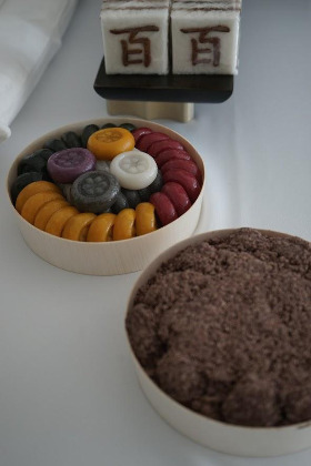 100일 상차림과 떡