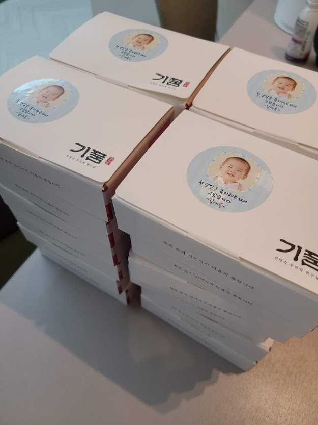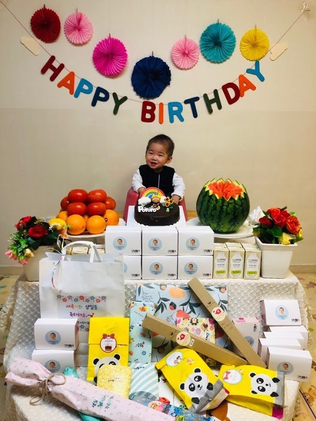 어린이 집에서 호박이 생일잔치도 해주었는데, 답례로 떡과 케이크를 보냈다. 어린이집으로 떡과 케이크를 배달하느라 와이프가 고생이 많았다. 스티커도 나름 주문해서 귀엽게 만들어서 호평을 받았다.