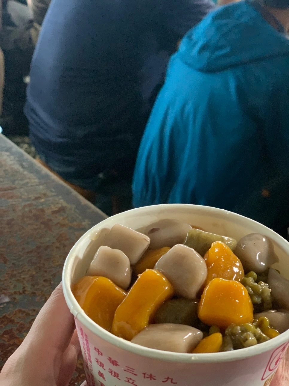 지우펀에 갔다면 꼭 먹어야 하는 지우펀의 명물, 위위엔. 그중 현지인 친구의 추천으로 지우펀의 거의 꼭대기에 위치한 아간이 위위엔을 찾았다. 토란으로 만든 쫄깃한 떡과 각종 토핑을 따뜻하게 혹은 빙수처럼 차갑게 먹는 간식이다.