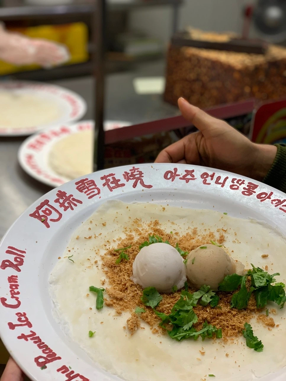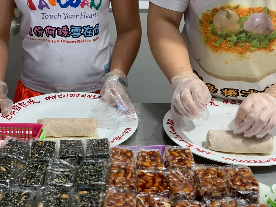 지우펀 라오제 중턱에 위치한 땅콩 아이스크림은 대만 야시장에서도 가끔 찾아볼 수 있다. 하지만 어째서인지 에디터는 지우펀에 갈 때만 이 땅콩 아이스크림을 먹게 된다. 얇게 부쳐낸 전병 속에 아이스크림 두 덩이, 그리고 땅콩가루와 고수를 올려서 돌돌 말아주는 이 아이스크림의 맛!