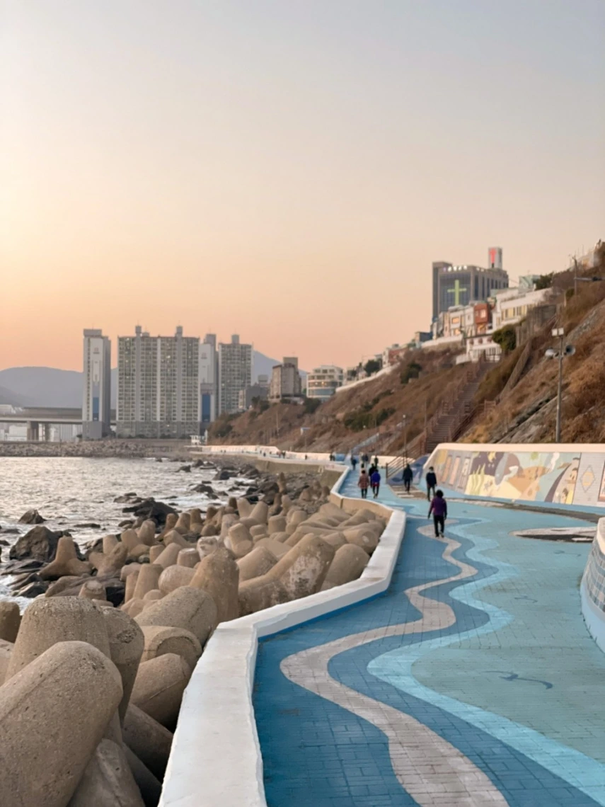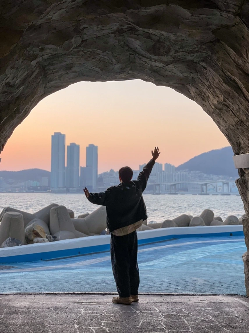 완벽한 공간에 서있기만 하면, 또 하나의 작품이 탄생한다. 흰여울해안터널에서 사진을 찍는다면 꼭 노을이 지는 시간에 맞춰 오기를 추천한다.