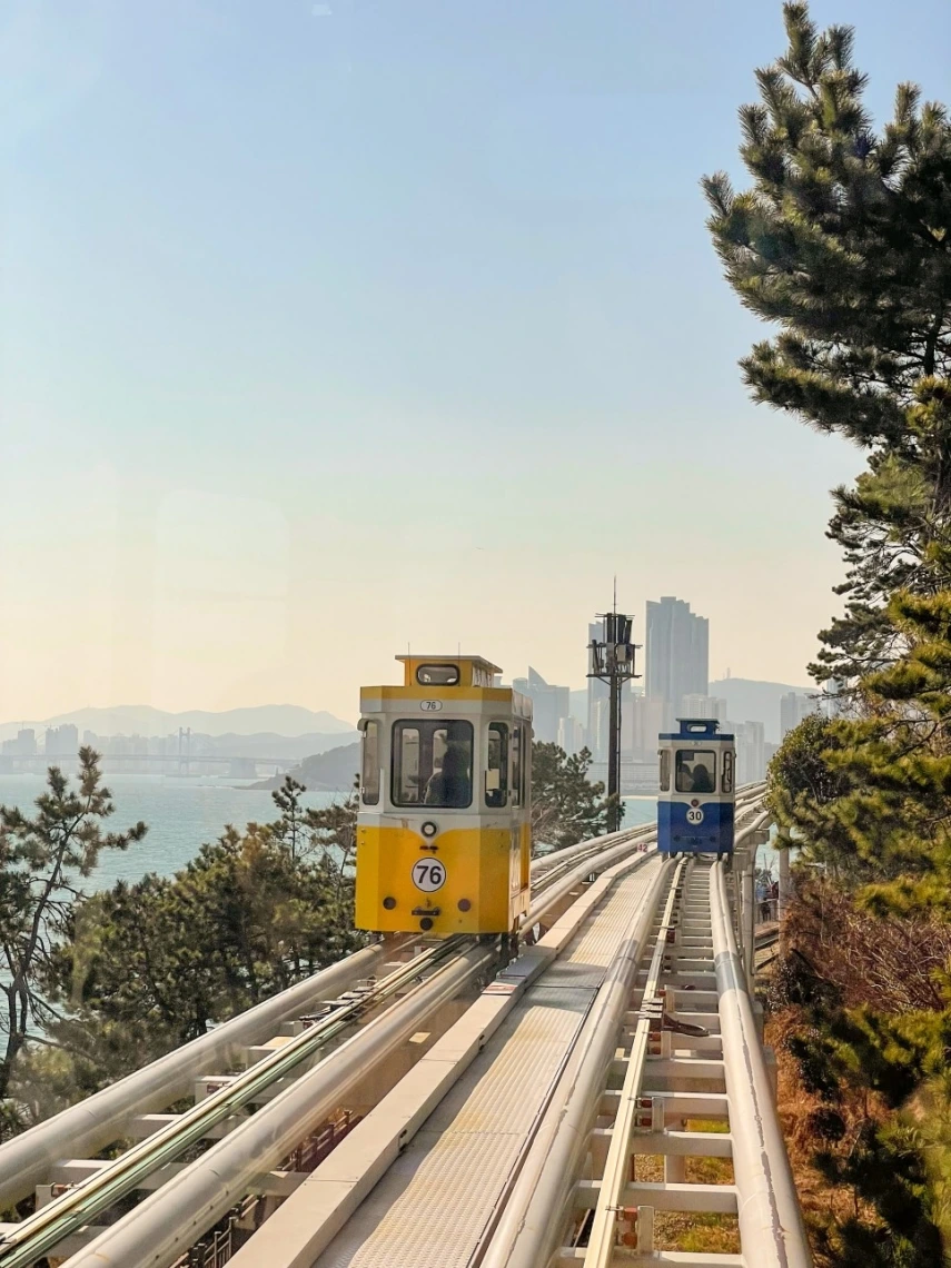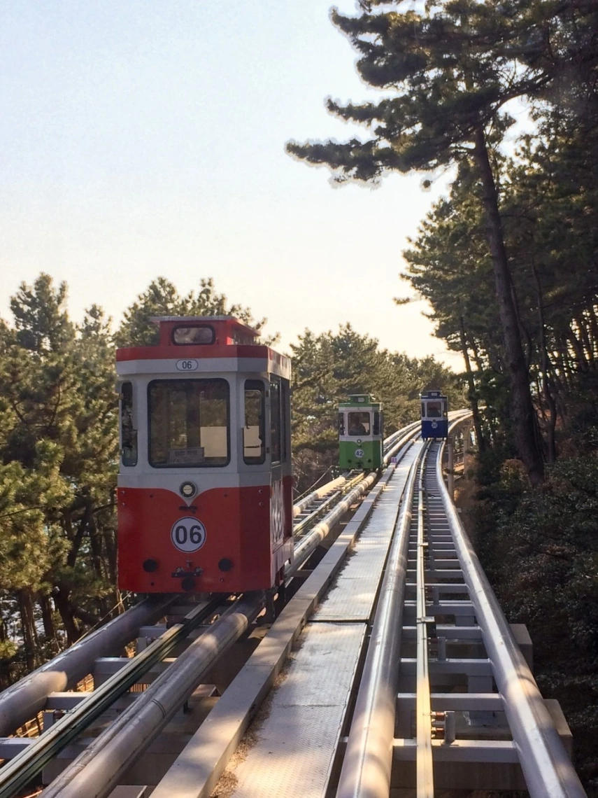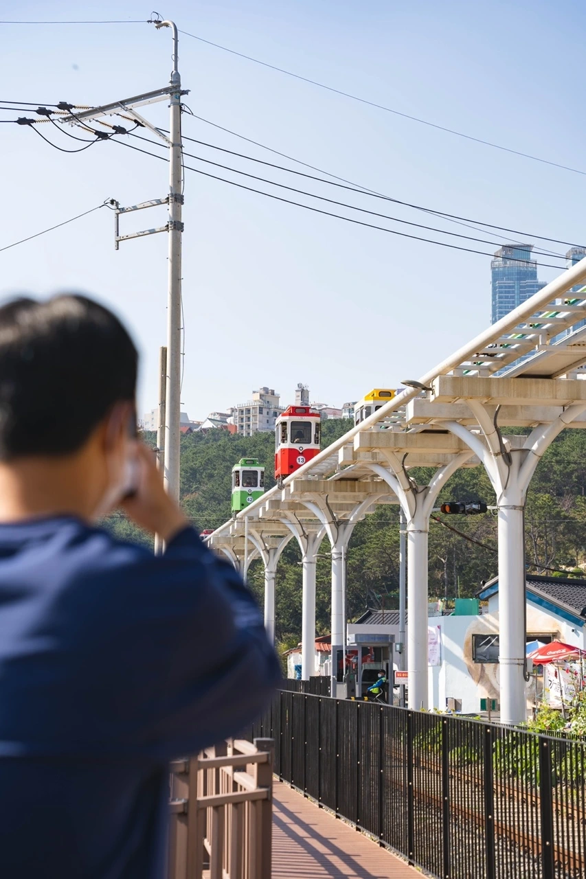 '붉은색 푸른색 그 사이 3초 그 짧은 시간'이라는 이무진의 신호등 노래 가사가 생각나는 순간이다. 해운대 블루라인파크는 마주 오는 알록달록한 스카이캡슐을 보는 재미까지 선사한다.