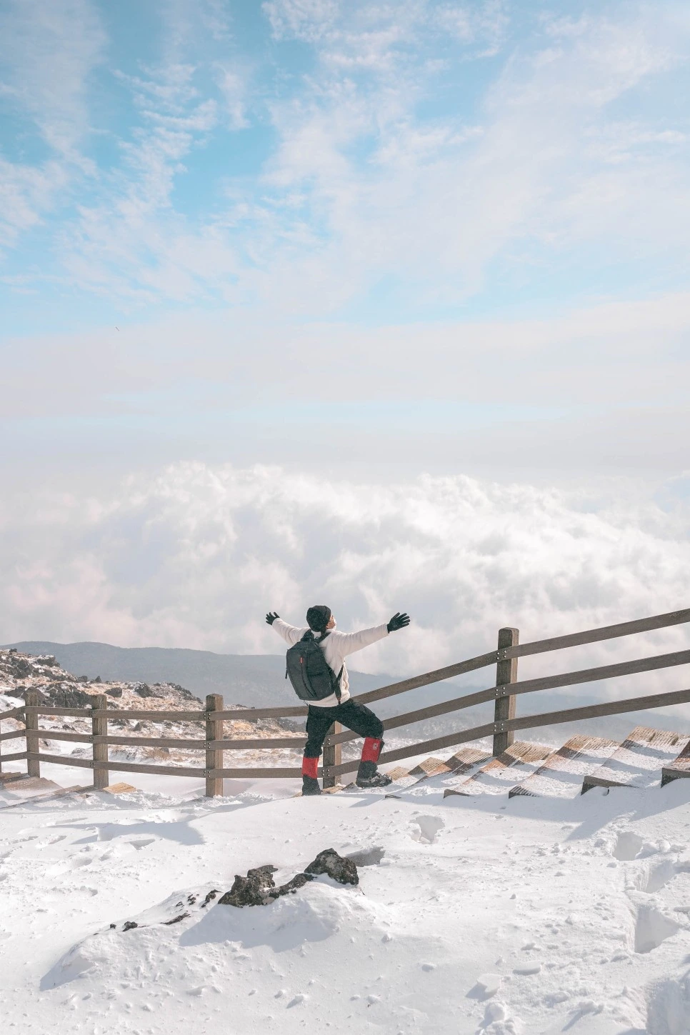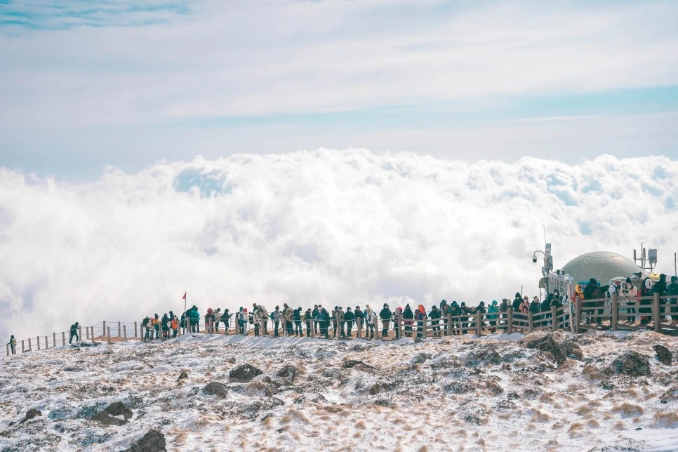 눈 내린 백록담은 정말 운이 좋아야 볼 수 있다. 이곳에선 바람이 심하게 불고 기온이 낮아 조금만 장갑을 벗고 있어도 손이 얼얼하다. 스마트폰 터치가 되는 장갑을 챙기면 도움이 될 테니 참고하자.
