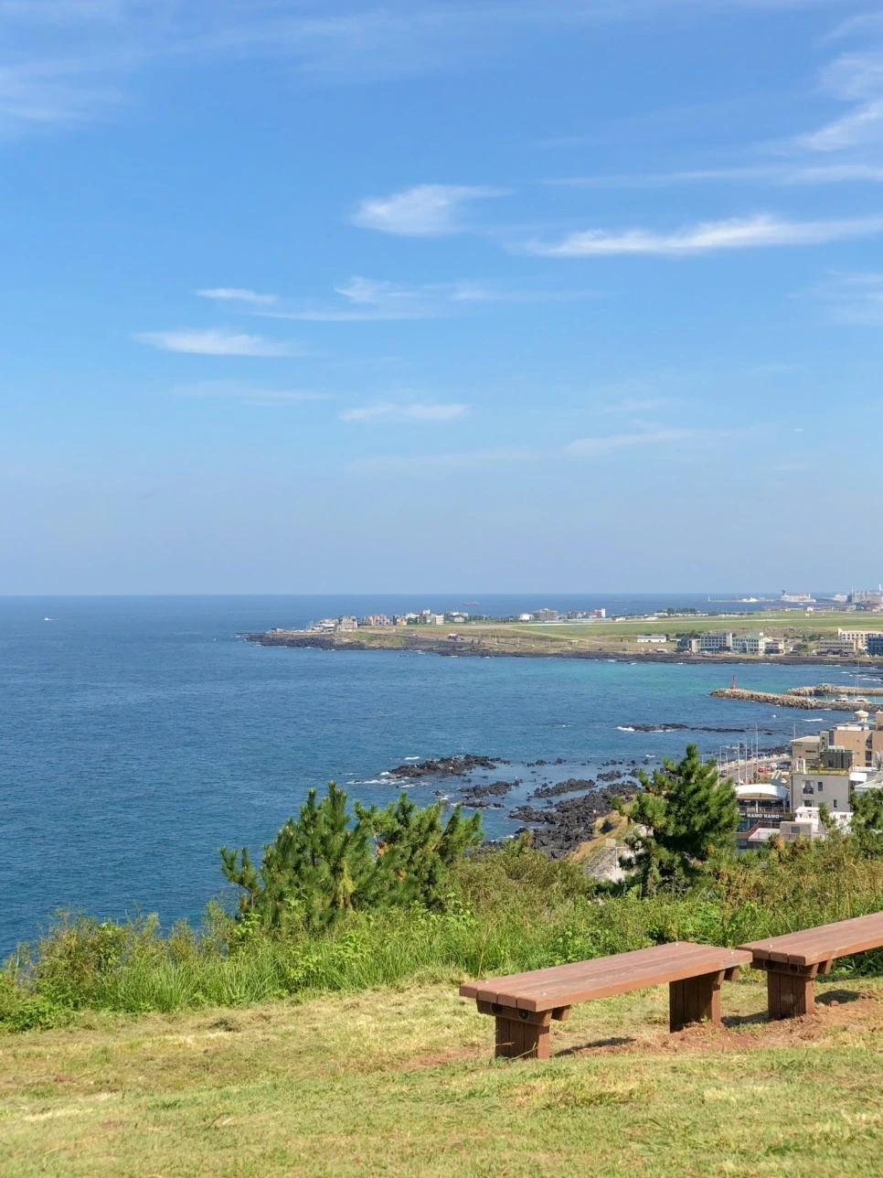 도두봉 정상에 오르면 제주의 푸르른 바다가 펼쳐진다. 벤치에 앉아서 바다멍 하기도 좋고, 일몰 시간대에 방문하면 노을을 보기도 좋다.