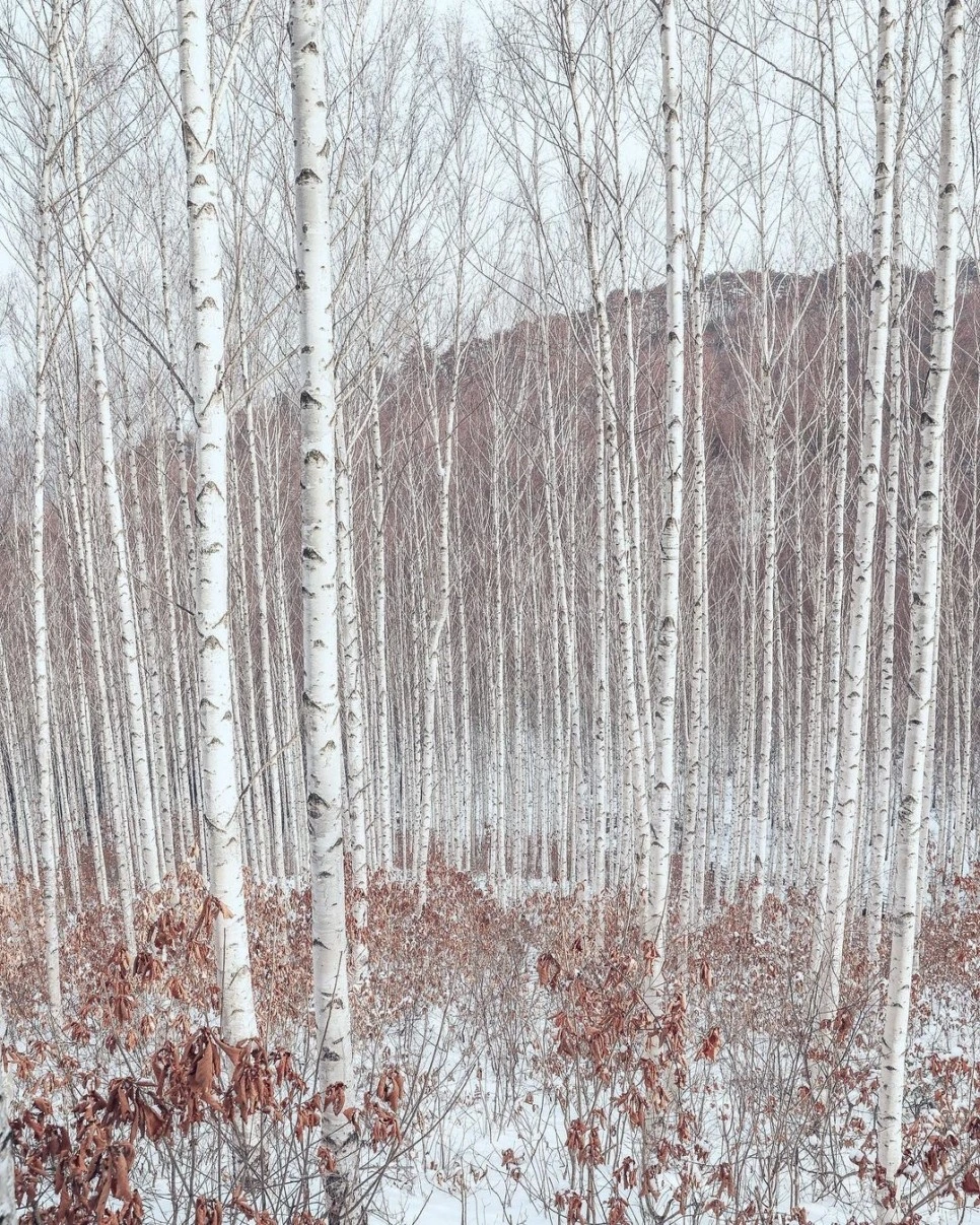 강원도 인제에 위치한 자작나무숲. 138헥타르 숲에 자작나무 690,000본을 조림해 만들었고, 현재는 그중 5분의 1은 유아 숲 체험원으로 운영중이다. 밝은 갈색 몸통을 가진 자작나무들이 한 데 모여 오묘하다. 어떤 계절에 방문해도 신비로운 분위기가 매력적이지만, 눈이 내리면 그 감동이 두배다.