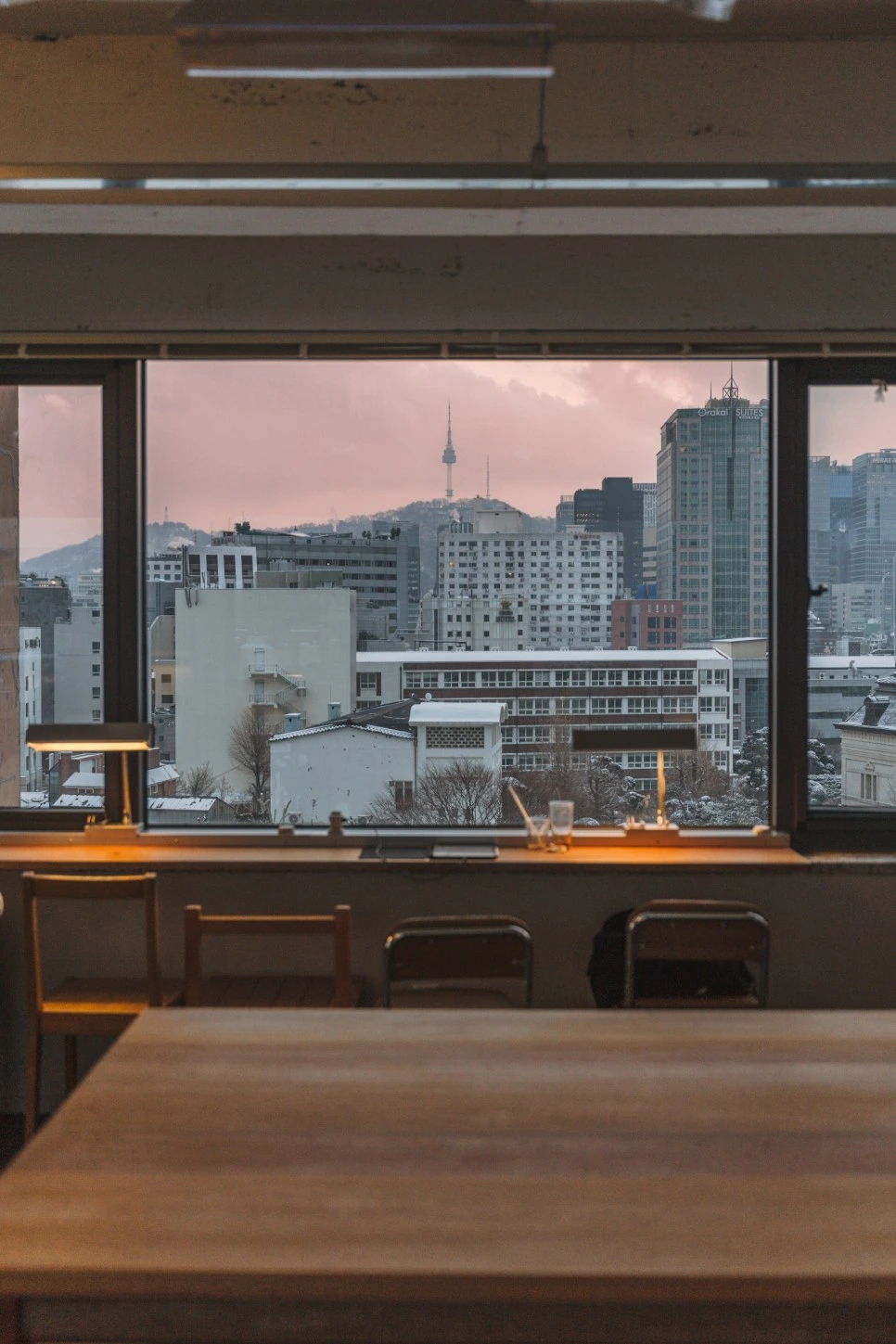 더 추천하는 공간은 오른쪽 공간이다. 앞뒤로 넓은 통창이 있어 각각 다른 풍경을 감상할 수 있다. 정면으로는 창경궁과 창덕궁이, 뒤로는 남산타워가 펼쳐진다.