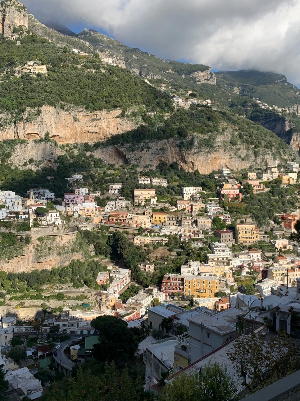 버스에서 내리면 포지타노의 마을과 바다가 한눈에 보인다. 날씨가 좋아서 절벽의 꼭대기까지 보였는데, 생각했던 것보다 가파른 지형이라 놀랐다. 바다로 이동할 수 없었더라면 들어가기도 힘들었을 마을이다.