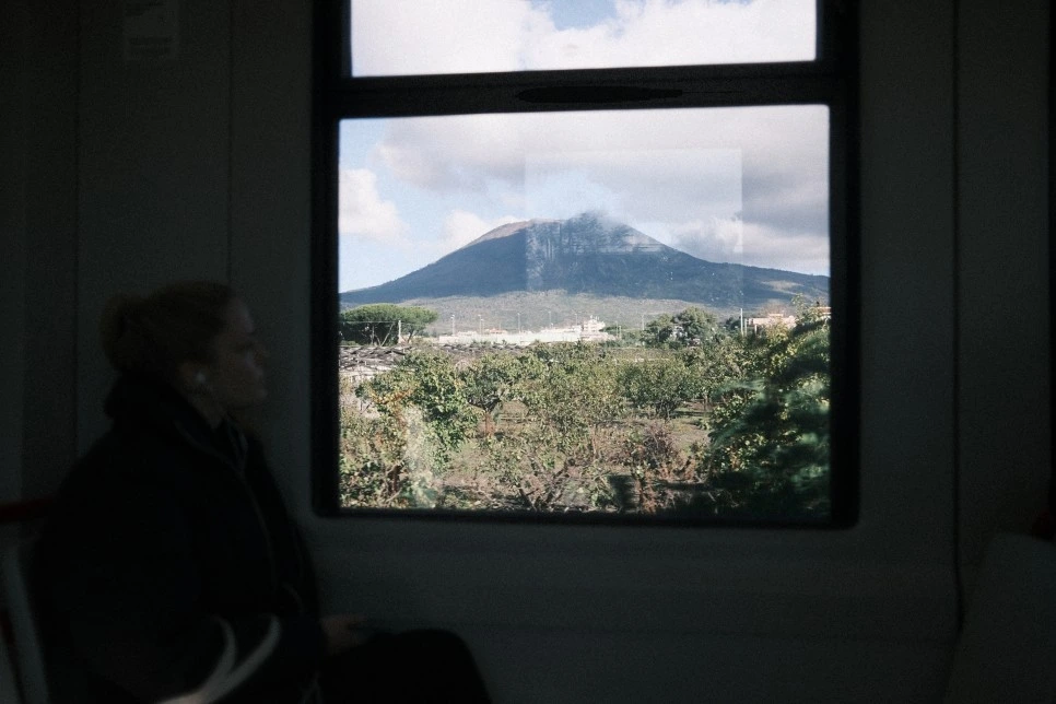 기차를 타고 30분 정도 지났을까. 폼페이가 가까워지면 베수비오 화산이 보인다.