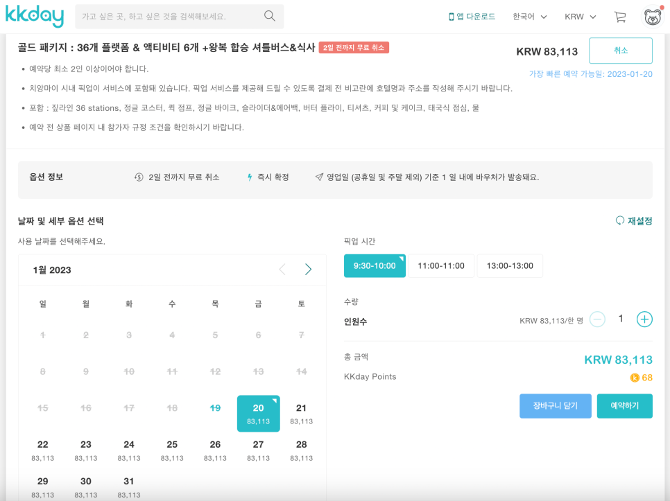예약 방법은 간단하다. 희망하는 패키지와 방문 날짜, 픽업 시간(9:30~10:00, 11:00~11:30, 13:00~13:30 중 택1)을 선택하고 결제를 진행하면 쉽게 바우처를 받을 수 있다.