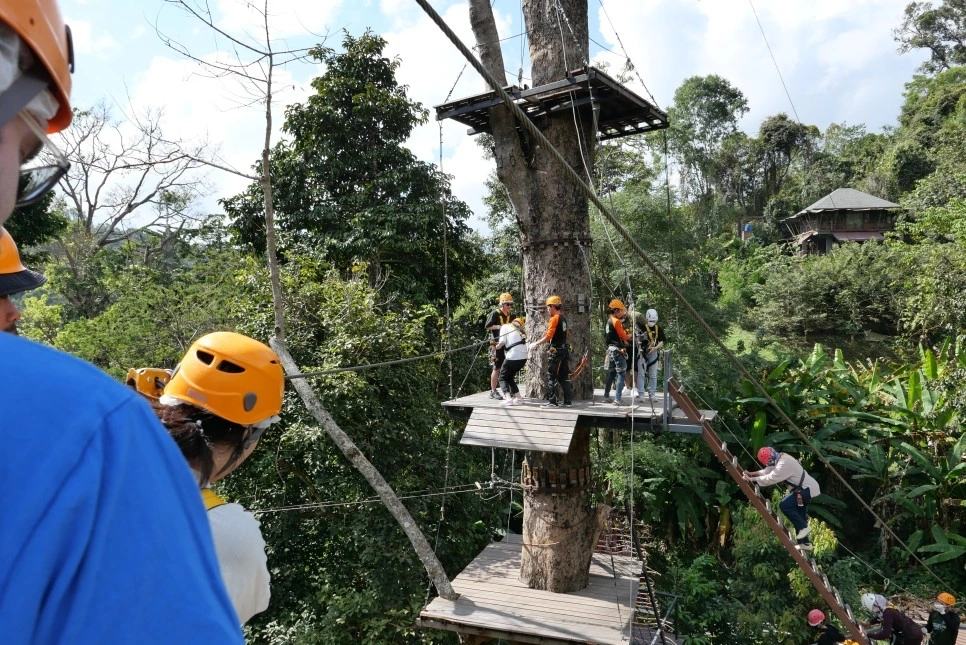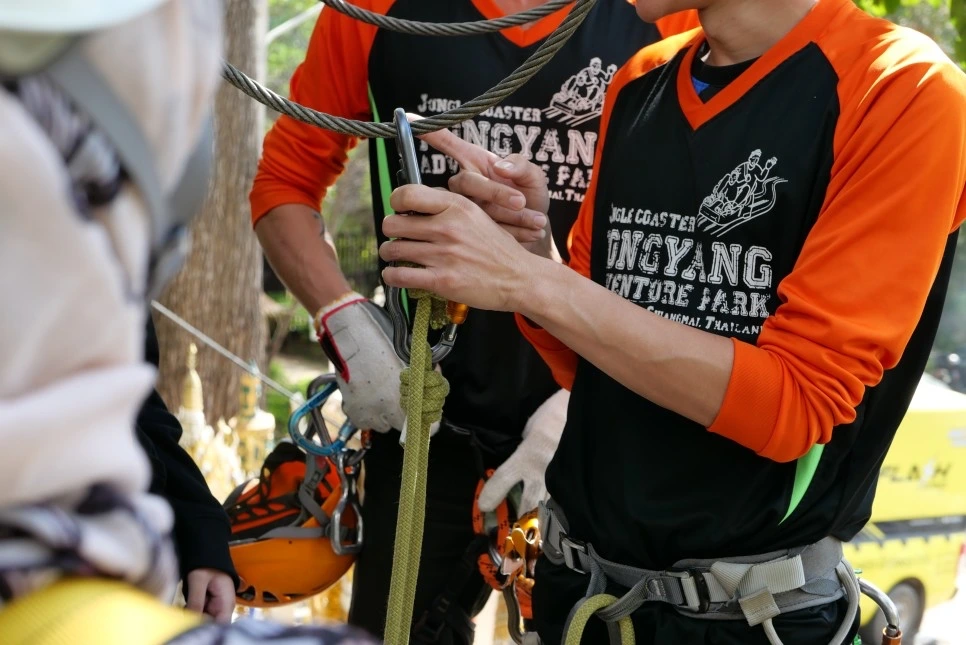 약 10명 정도 그룹을 지어 4명의 스태프와 함께 짚라인과 정글짐 등 다양한 정글 코스를 체험하는데, 이때 주머니 지퍼가 있는 옷을 착용하면 스마트폰이나 지갑 등 귀중품 분실을 예방할 수 있으니 참고하자.