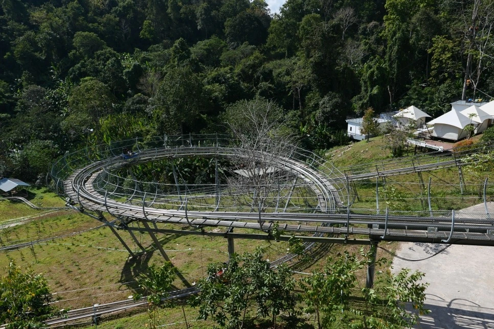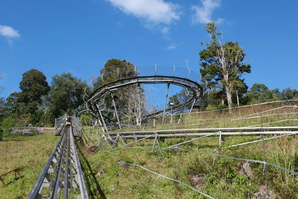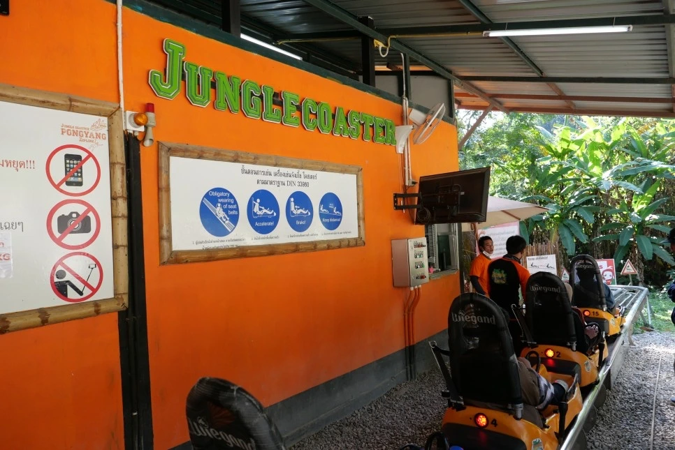 정글 코스터는 루지와 비슷한 액티비티라고 생각하면 쉽다. 양쪽 손잡이를 이용해 속도를 내고 브레이크를 잡을 수 있지만 레일을 타고 즐기는 액티비티기 때문에 코스를 바꾸거나 추월을 할 수 없다는 점이 특징.