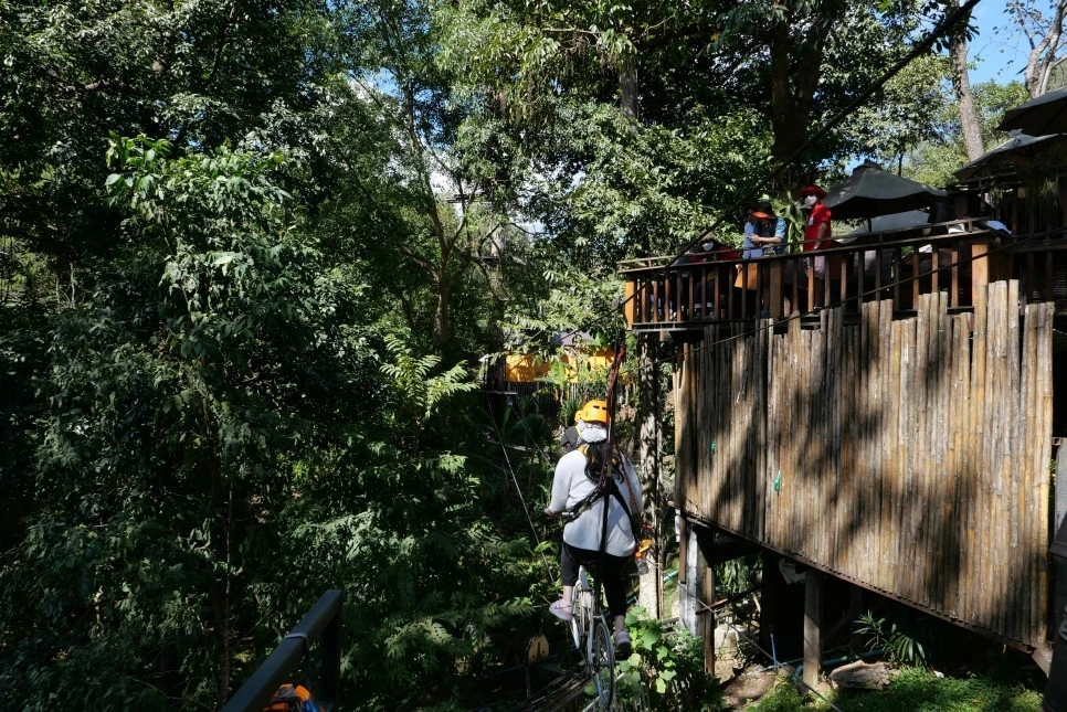 짚라인이 메인이지만 중간중간 외줄 자전거, 수직낙하 등 다채로운 구성으로 치앙마이 액티비티를 즐길 수 있다.