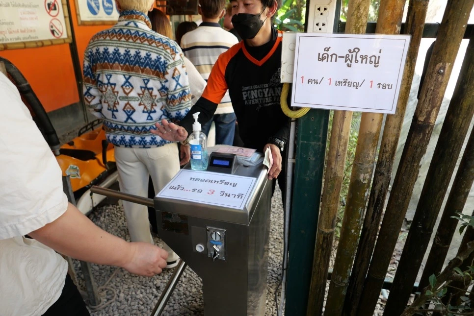 정글 코스터는 입구에서 종이 티켓이 아닌 코인을 넣어야 입장이 가능하다.