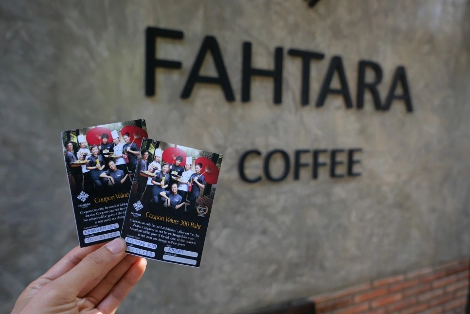 마사지 체험이 끝나면 마사지샵 옆에 위치한 FAHTARA COFFEE에서 이용 가능한 300밧 할인권도 제공하니, 커피 한 잔의 여유를 즐기며 치앙마이의 오후를 시작해 보자.
