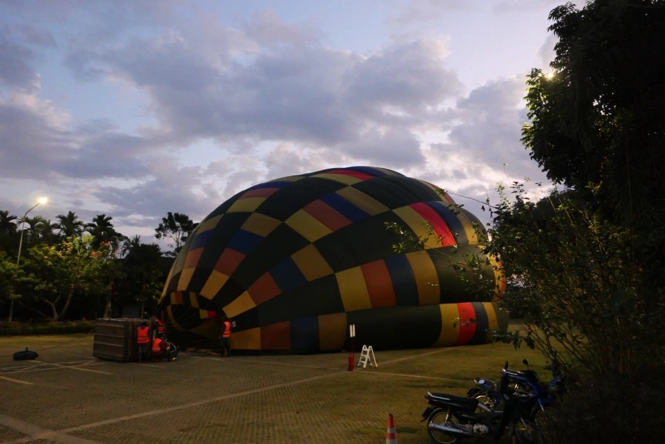 열기구가 온전히 서 있는 모습을 배경으로 사진을 찍고 싶다면, 탑승하기 전이 유일한 기회다.