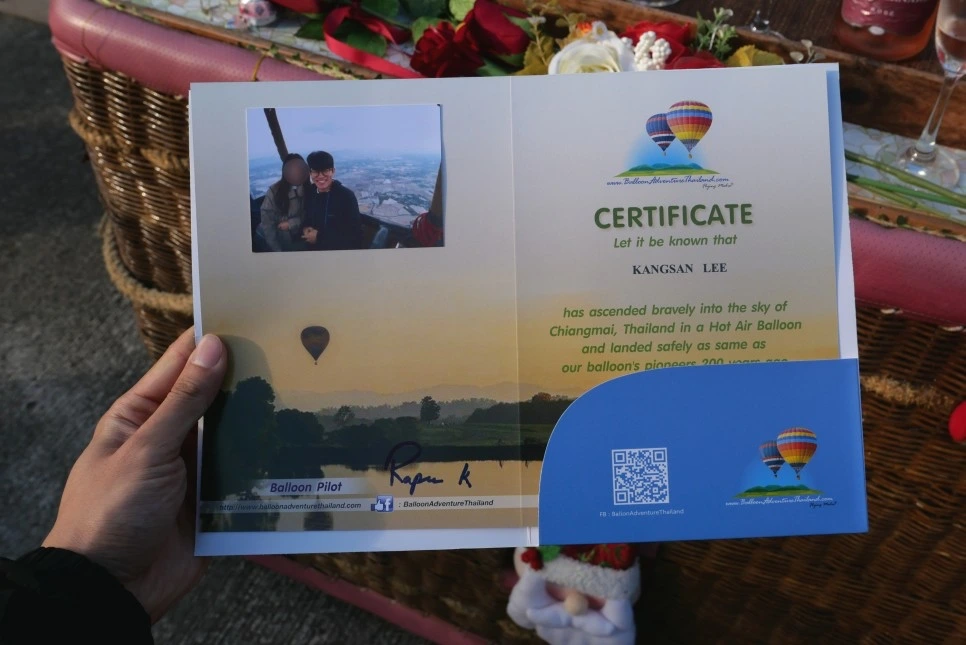 모든 행사가 마무리되면 열기구 파일럿이 하늘에서 직접 찍어준 사진과 자필 서명이 들어간 인증서를 받을 수 있다.