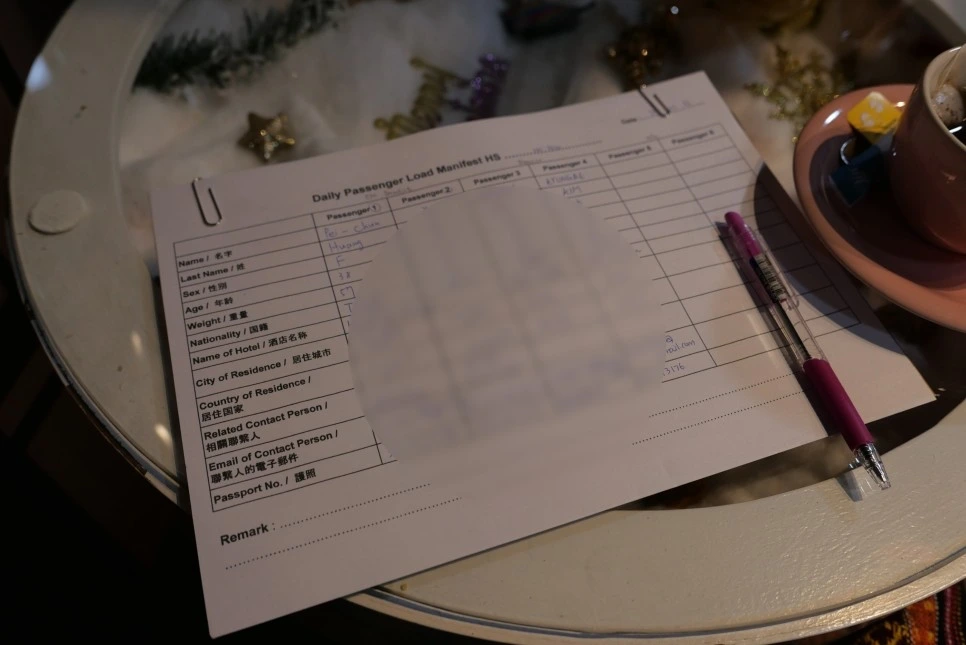 열기구 탑승 전에는 시트에 탑승객 개인 정보와 몸무게를 작성한다. 이후 본격적으로 열기구에 탑승하기 위해 사무실 건물 뒷마당으로 이동했다.