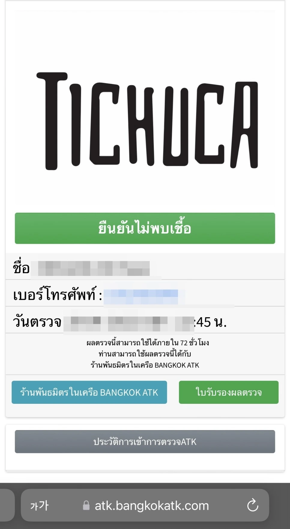 티츄카 루프탑바에 입장하기 위해서는 여권과 신속항원검사 음성확인서가 필요하다. 입장하기 전 여권 확인 후 루프탑바가 위치한 T-One Building 1층에서 신속항원검사를 진행한다. 신속항원검사 비용은 100바트이니 참고하자.