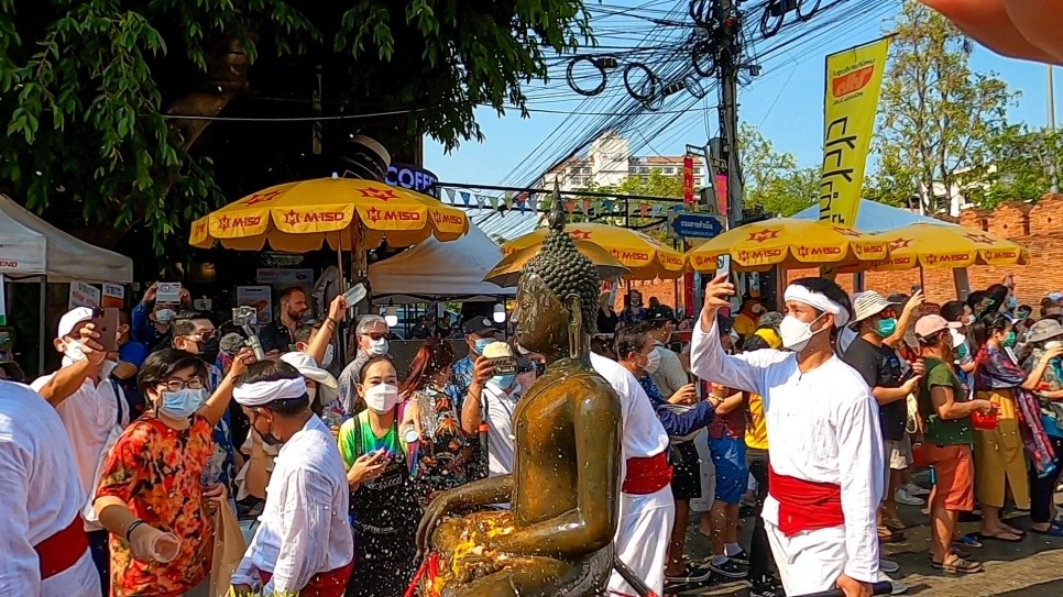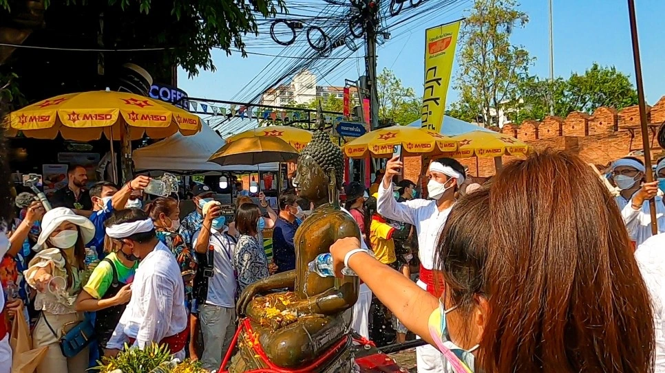 송크란 축제 기간 동안에는 치앙마이 길거리에 전시된 작은 불상들을 만나볼 수 있다. 불상 옆에는 불상에게 뿌릴 수 있는 물도 준비돼 있다. 치앙마이 사람들은 물을 뿌리면서 새해에 바라는 소원을 빈다고 한다.