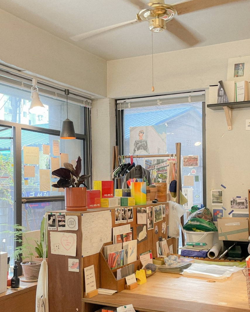 주위에 흔한 카페나 음식점 하나 없이 빌라촌 골목 사이에 위치해 있다. 서점이란 말보단 동네 책방이란 이름이 더 잘 붙는다. 제주도에나 있을법한 무드를 보여주는 이곳. 겉에서만 봐도 사고 싶은 게 가득할 거 같은 그런 무드 말이다. 아무렇지 않게 놓여 러프한 듯 정돈된 모습이 아주 마음에 든다.