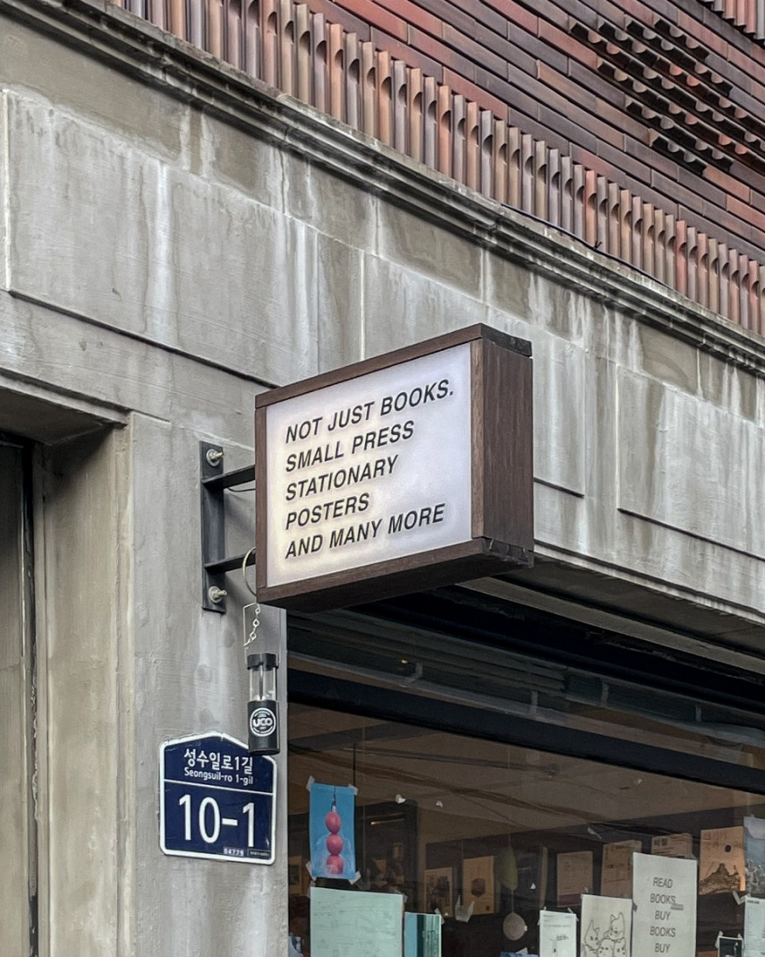 아주 단순한 문제지만 이곳 주인께서 출판물과 그와 관련된 것을 얼마나 소중히 여기는지 보인다. 덕분에 '못'찍은 게 아닌 '안'찍을 수 있어 다행이었다. 물론 책 사진이 없어 아쉬울 수 있겠지만, 계산대만으로도 이곳 감성을 충분히 보여주니 더 궁금하다면 꼭 직접 방문해 보길 권한다.
