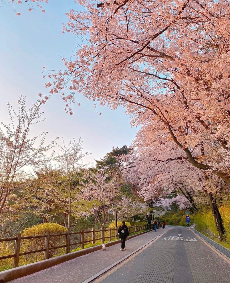 케이블카를 타고 올라갈 수도 있지만 천천히 걸으며 봄의 아름다움을 느끼는 걸 추천해요.