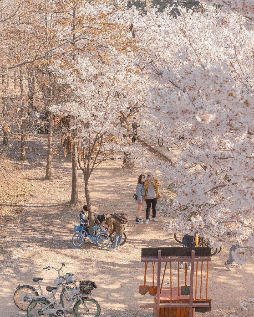 벚꽃뿐만 아니라 개나리, 튤립과 같은 봄꽃과 매화와 목련, 산수유나무들로 가득 차 알록달록한 봄을 느낄 수 있을 거예요.