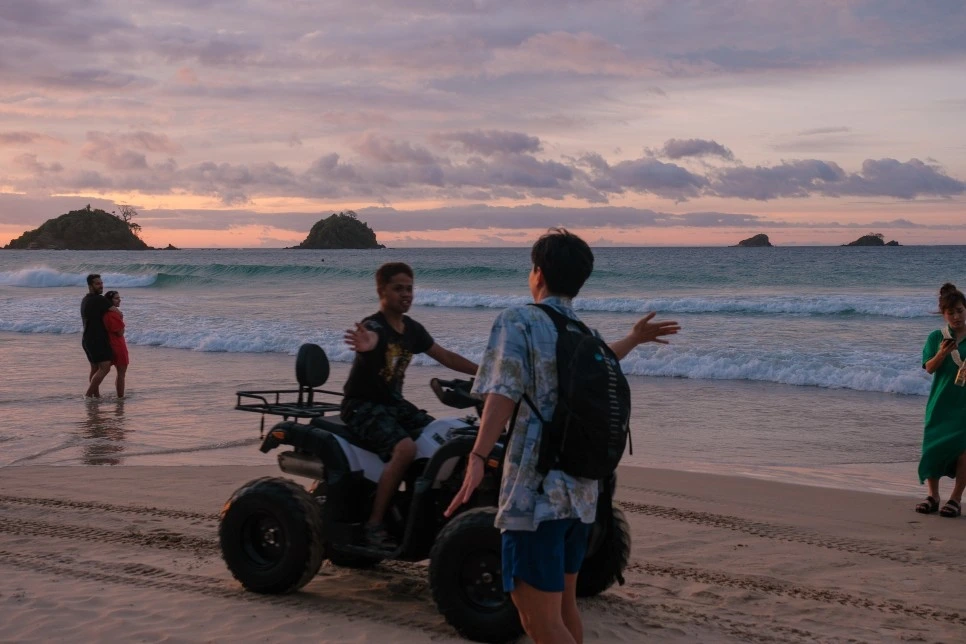 낙판 비치에서는 다양한 액티비티를 즐겨보자. 바다의 표면을 이용해 타는 스킴보드, 화이트비치를 달리는 ATV 등 다양한 수상 스포츠를 경험할 수 있다.