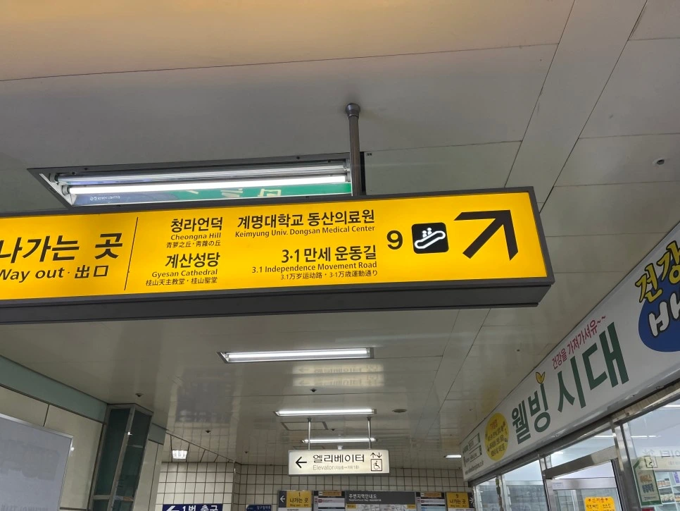지하철에서부터 대구 근대골목투어와 관련한 지도와 안내가 많이 보인다. 지도를 꼭 따라갈 필요는 없지만 전체적인 관광 명소의 위치를 파악할 수 있다. 9번 출구로 나가면 청라언덕으로 가는 길이 이어지는데, 그대로 직진하면 오르막길이 보일 것이다.