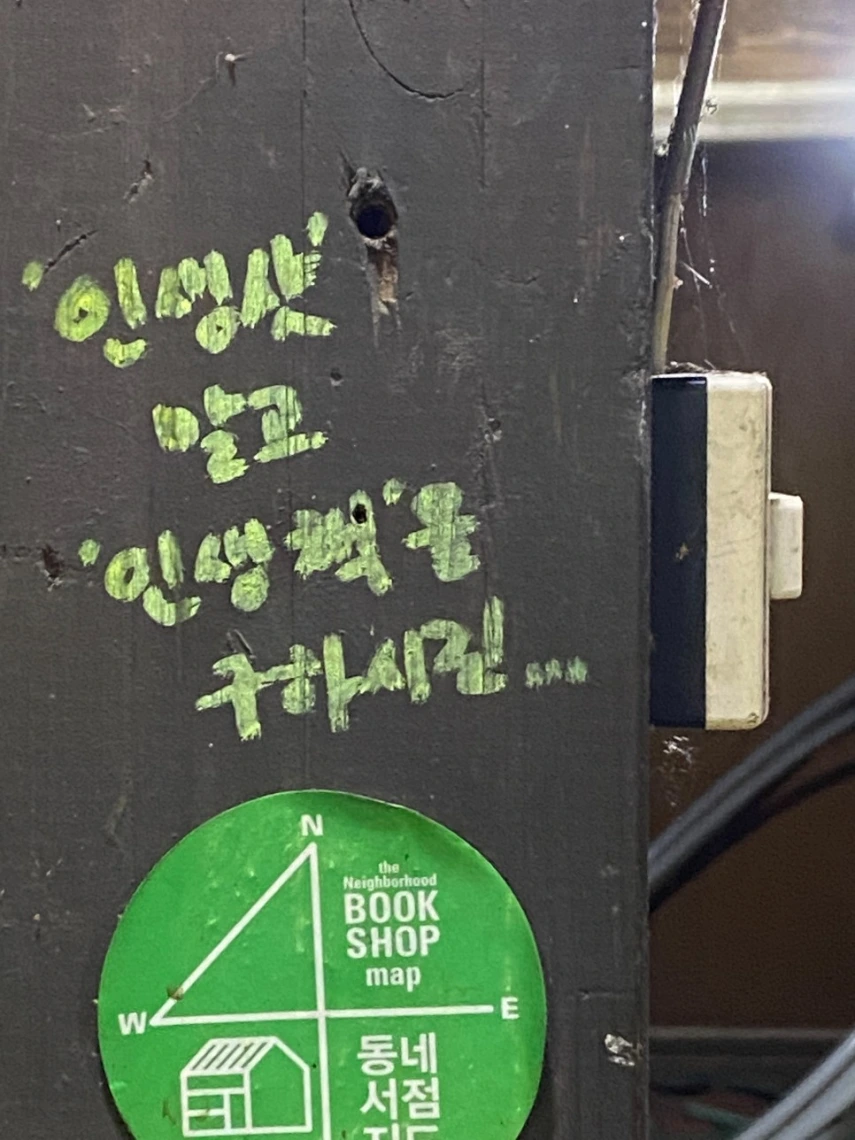 새한서점은 영화 내부자들 촬영지로도 유명하다. 하지만 영화 촬영지나 관광지 이전에 책을 판매하는 서점이기에 카메라 촬영이나 삼각대 사용이 불가하다. 손글씨로 적혀있는 안내문을 읽어보니 조용한 책방이 되길 바라는 마음으로 단체 손님도 받지 않고 있다고. 뛰거나 큰소리로 떠들지 않도록 주의가 필요하며 책을 사진 촬영을 위한 소품으로 사용하지 않도록 하자.
