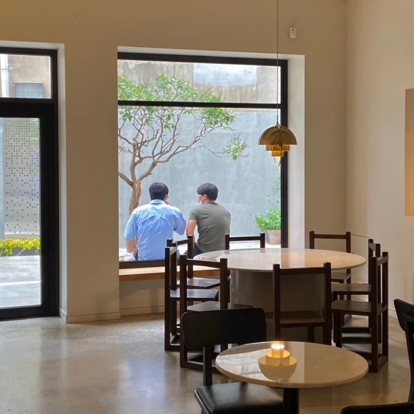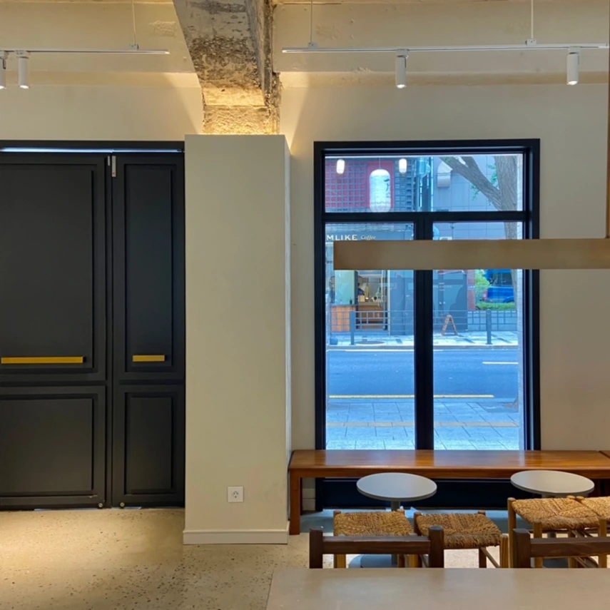 '모던'이라는 추상적인 콘셉트를 공간으로 구현한다면 이런 곳이겠지. 카페는 심플하면서도 지루하지 않은 매력이 돋보이는 곳이다. 공간을 구성하는 가구들의 디자인은 간결했지만 우드, 라탄, 대리석 등 소재를 달리해 신선함을 더했다. 하나의 오브제처럼 디자인이 유니크한 조명 역시 인상적이었다. 매장은 1층, 2층을 비롯해 테라스 공간까지 이용할 수 있어 꽤 넓은 편이다. 건물의 층고도 높고 테이블 간격 역시 여유가 있는 편이라 뭘 해도 답답한 계절에 편히 쉬어갈 수 있어 좋았다.