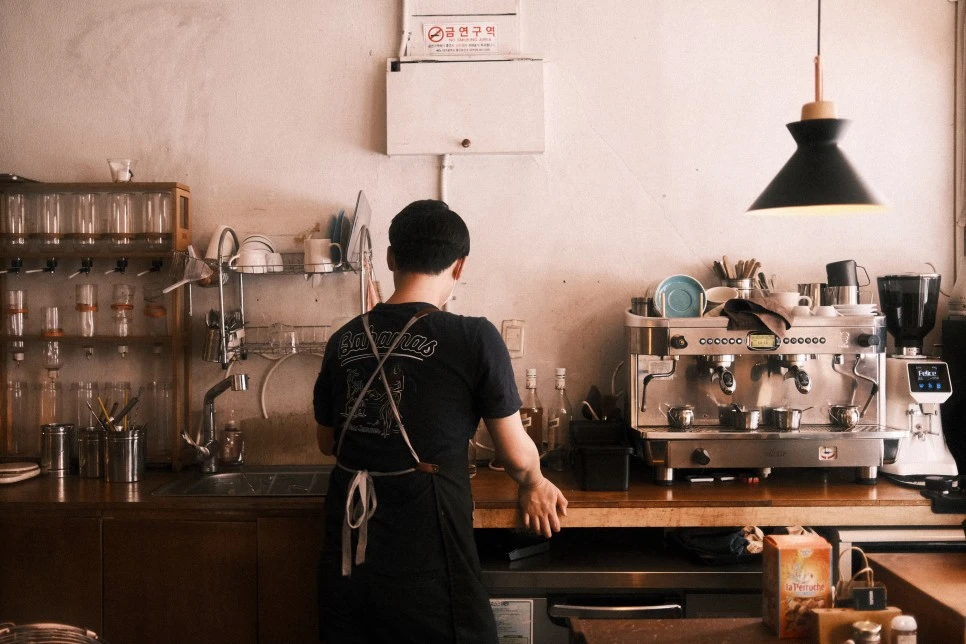 책장에는 무라카미 하루키의 오래된 책과 각종 커피 용품이 진열되어 있다. 조용한 카페와 하루키를 좋아한다면 방문해 보자. 아, 그리고 2인 이상 방문할 계획이라면 작게 대화를 나눠야 하는 서소의 에티켓을 존중하길 바란다.