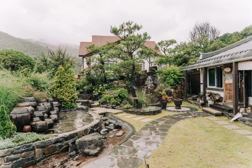 입구를 가는 길부터 무언가 특별하다. 카페가 아닌, 시골집에 온 기분이랄까. 돌길을 따라 들어가다 보면 옆으로는 물이 흐르고, 정성스레 꾸며진 마당이 나온다. 법기수원지를 다녀와서일까. 현대적인 카페도 좋지만, 역시 옛것이 자연과 잘 어울린다고 생각했다. 마당에 옹기종기 놓인 장독대마저 어느 오브제보다도 멋스러우니.