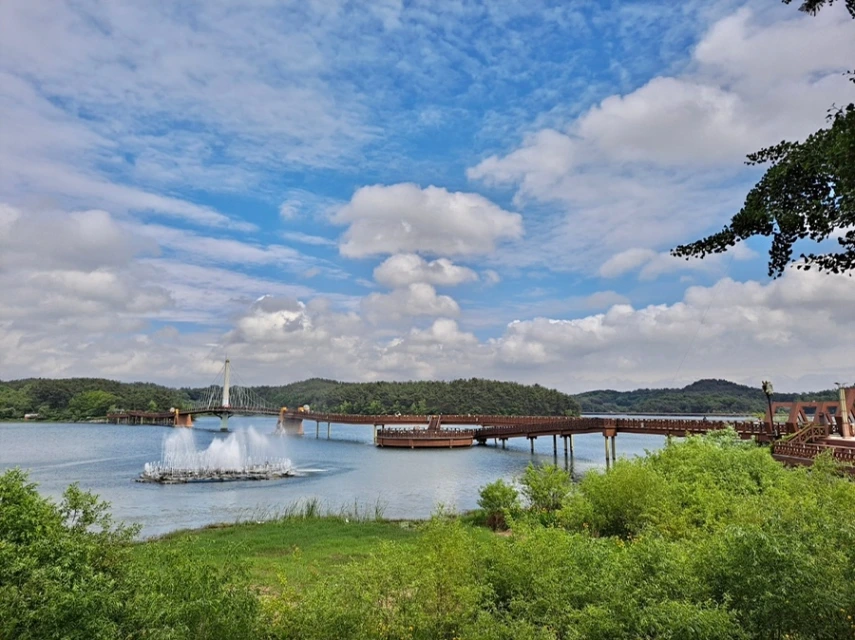 하릴없이 산책로를 따라 걷다 보면 호수를 가로지르는 커다란 다리가 보인다. 물빛다리라 이름 지은 이곳에서도 낭만적인 볼거리가 하나 있는데, 바로 음악 분수이다. 분수가 나오는 시간이 따로 공지돼있지 않아 아쉽지만 운이 좋다면 음악에 맞춰 꽃잎 모양으로 차오르는 물보라를 구경할 수 있다. 동절기를 제외한 계절에만 운영하니 방문 전 참고하자.