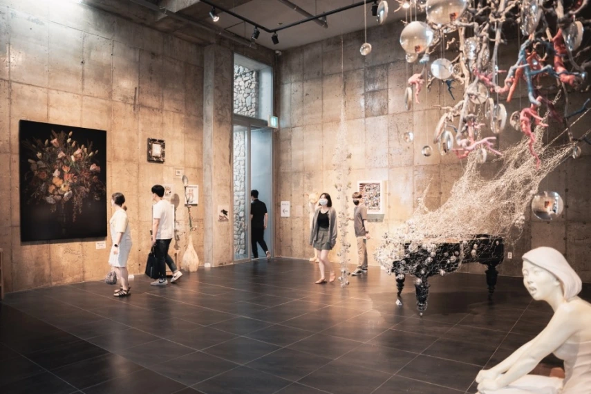 먼저, 실내공간인 현대미술관부터 소개하고자 한다. 총 3개의 관 중, 제 1관에서는 키네틱 아트 작품과 설치미술, 조각 등 여러 작가의 작품을 함께 전시하고 있다. 작품을 조종해보기도, 연주하며 함께 사진을 찍어 완성해보기도 하는 등 관객들이 참여할 수 있는 작품들을 만나볼 수 있다.